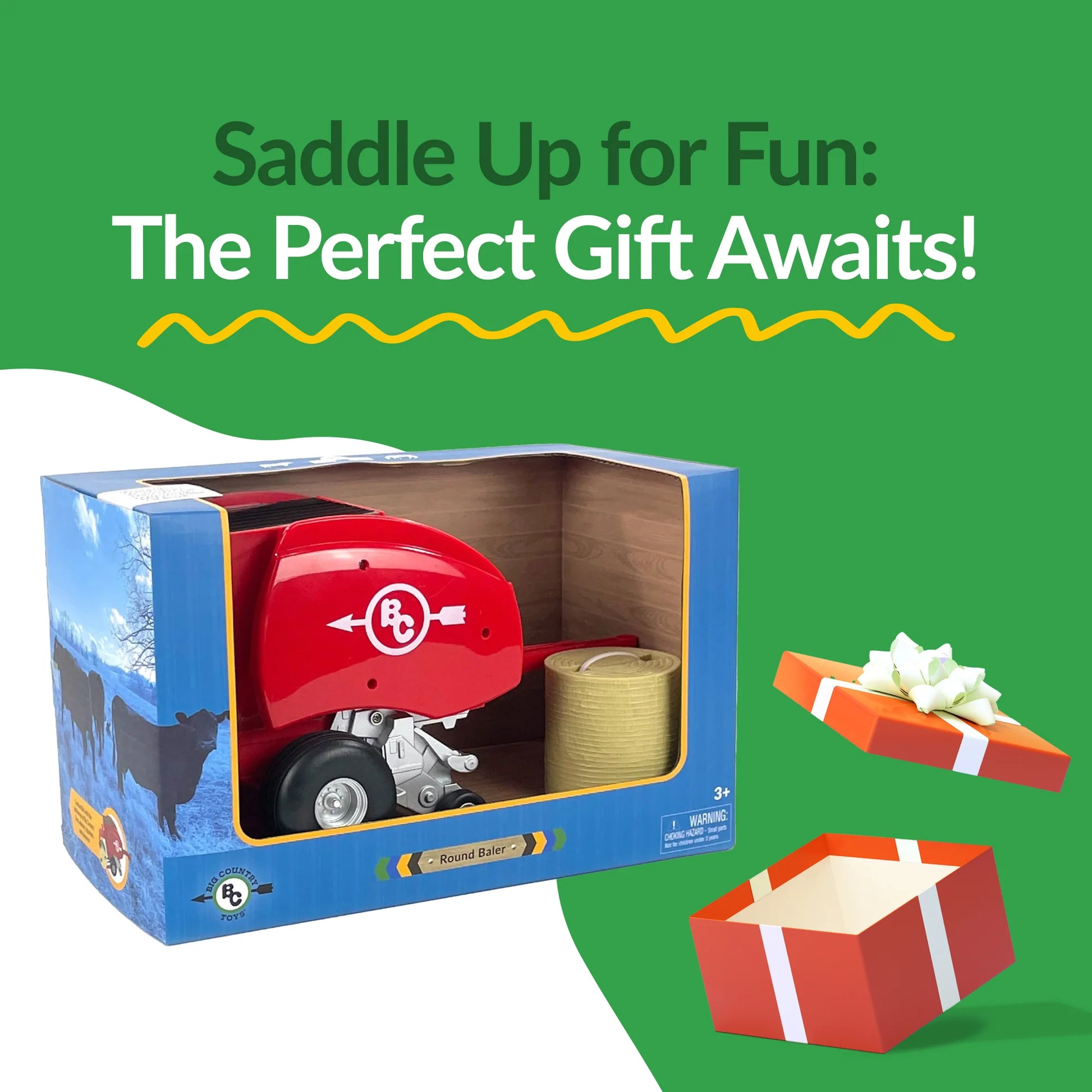 PLAYABLE: The Round Baler includes 1 hay bale that can be loaded into the internal hay compartment and rolled out, just like a real baler! The Round Baler is a part of Big Country Toys patent-pending hay baling system that features our uniquely designed hay bales with holes that will function with the Big Country Tractor, Ford Flatbed Truck, Hay Trailer, and Hay Ring (each sold separately).
