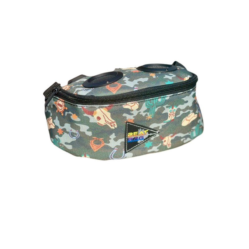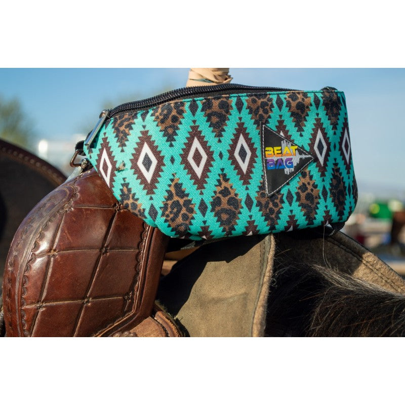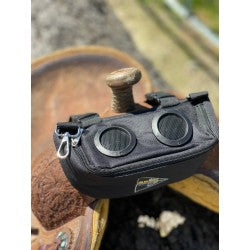 The ultimate riding accessory is here!!!! The Beat Bag is a saddle pouch equipped with 2 rechargeable blue tooth speakers ready to play your music or to amplify your coaches voice while riding. The beat bag is insulated front and back to keep your items safe while riding, has 2 nylon straps with clips to attach to your saddle pommel, 2 clips to clip to your belt loops or english saddle. The bluetooth speakers easily connect to your device by selecting "Beat Bag" in the bluetooth options, and comes with USB cord to recharge the speakers. Use while riding, biking or running or any other activity that needs a beat!!!