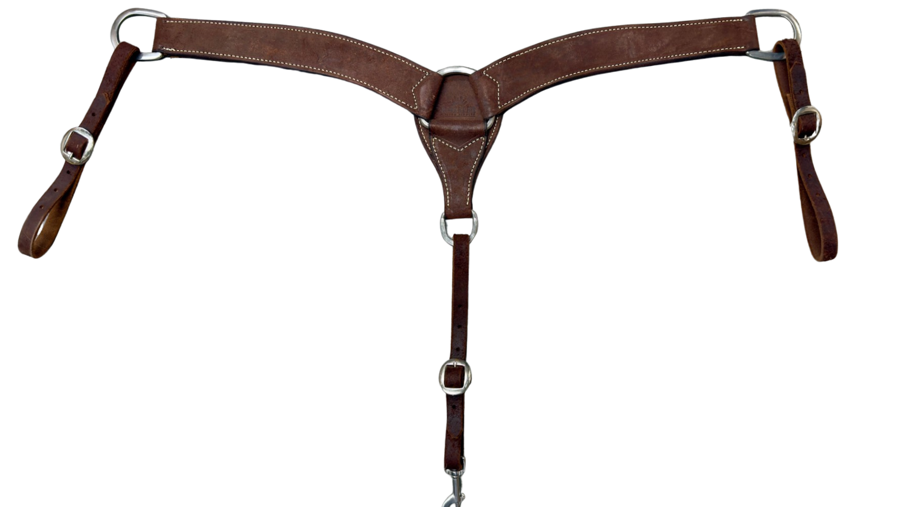 2" Chocolate Roughout Breastcollar combines rugged durability with refined craftsmanship. Crafted from rich chocolate roughout leather, this breastcollar delivers reliable performance in the arena or on the trail. Stainless steel hardware resists corrosion and maintains its polished appearance through demanding use. The 2" width provides optimal weight distribution for comfort and stability. Built to withstand years of hard work while maintaining its classic appeal, this breastcollar is an investment in quality tack that won't let you down.