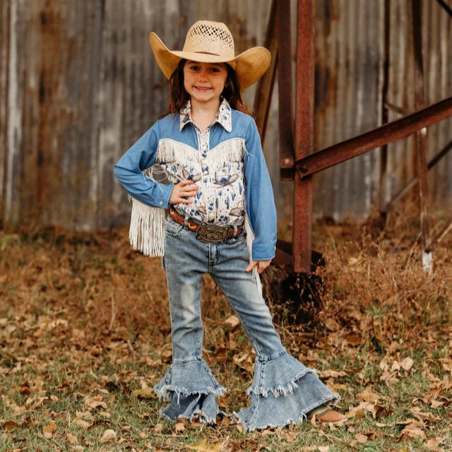 Shea Baby Toddler/Girl Rancher Cowgirl Long Sleeve Pearl Snap Shirt