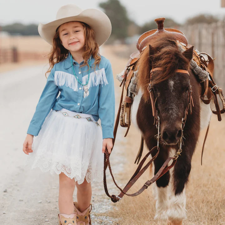 Shea Baby Toddler Girl's Denim Fringe Pearl Snap Long Sleeve Shirt