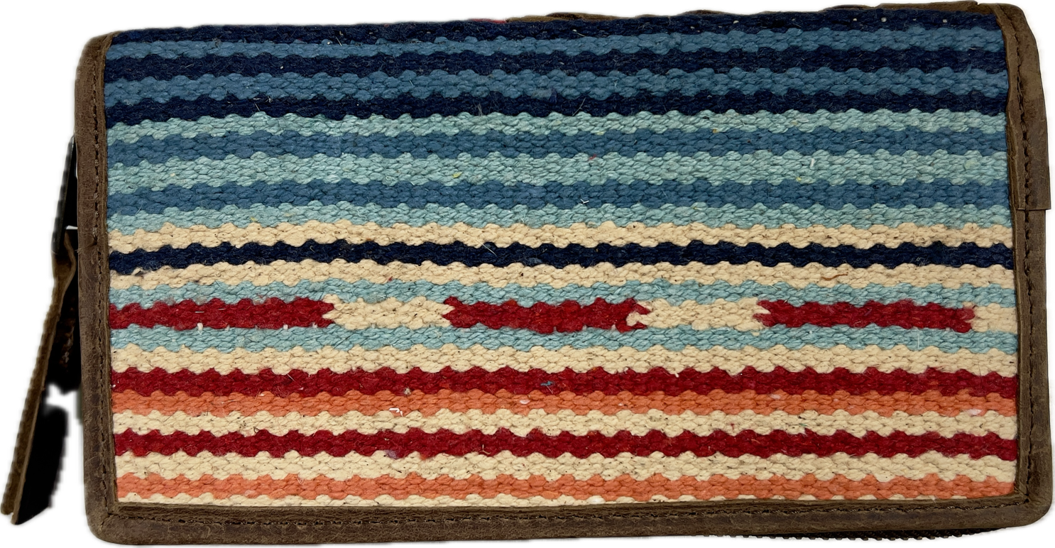 The Chaynee Mountain Ladies Bifold wallet combines an array of full grain and hair on hide leathers with colorful serapes for a unique, vintage feel.