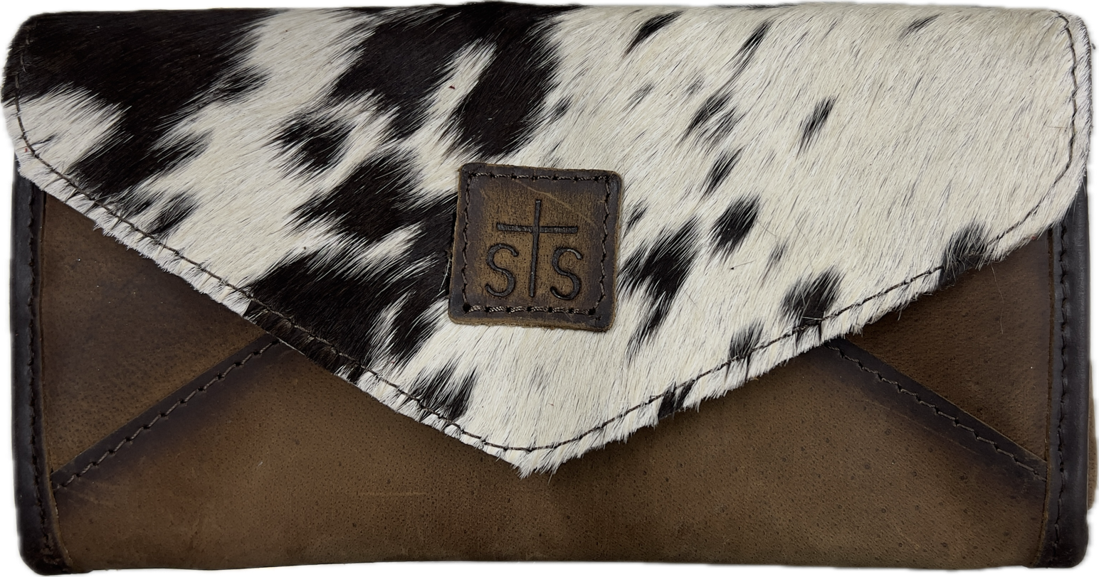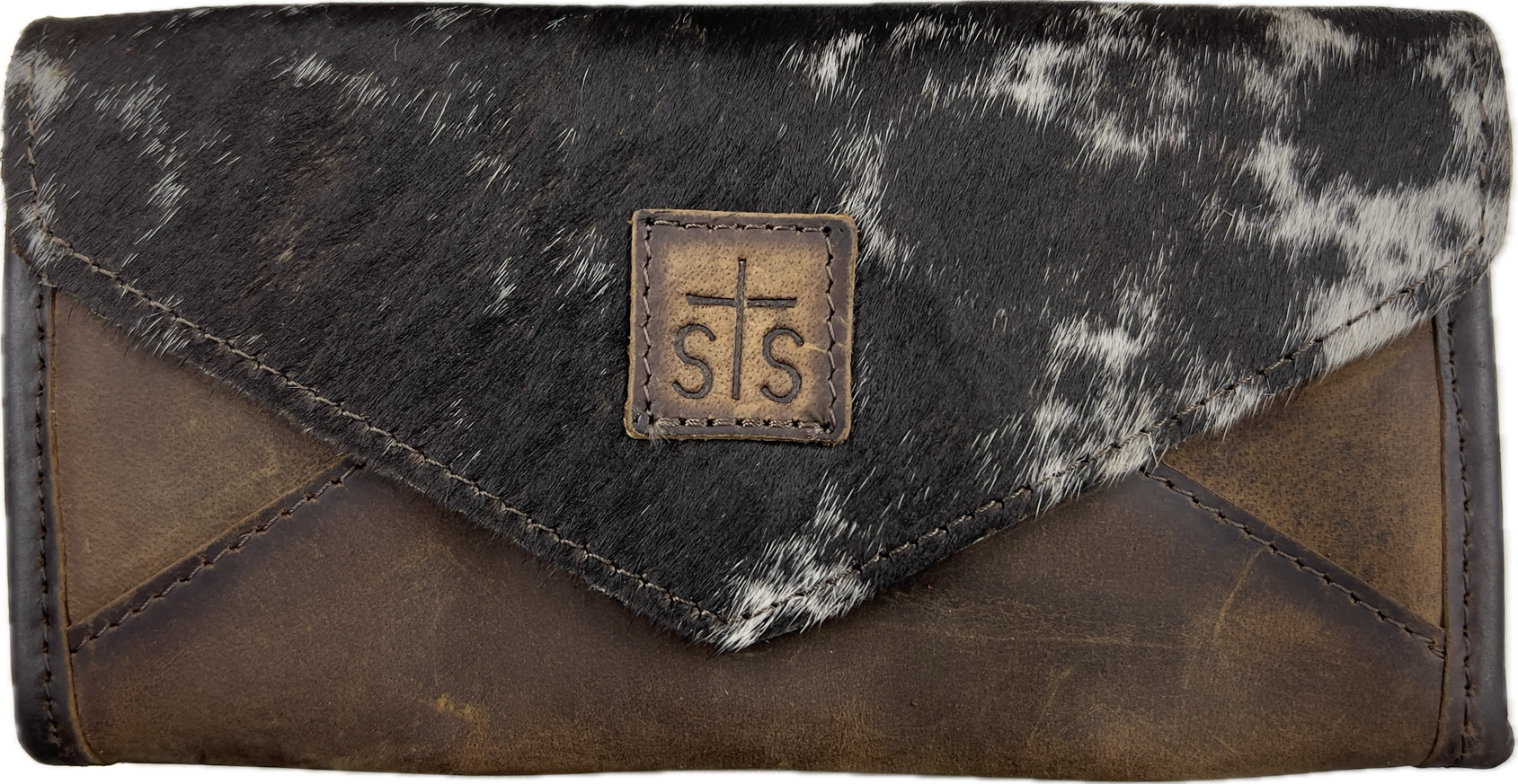 The Cowhide Style Wallet features genuine cowhide and full grain leather accents buffed for a natural feel.