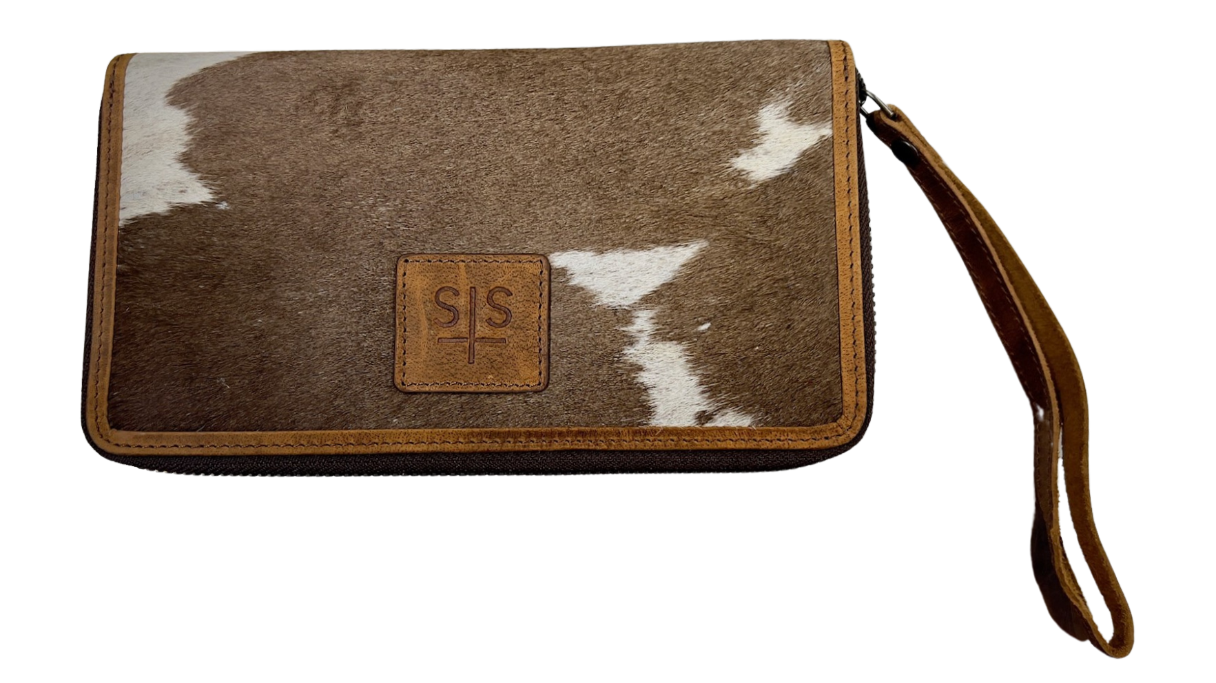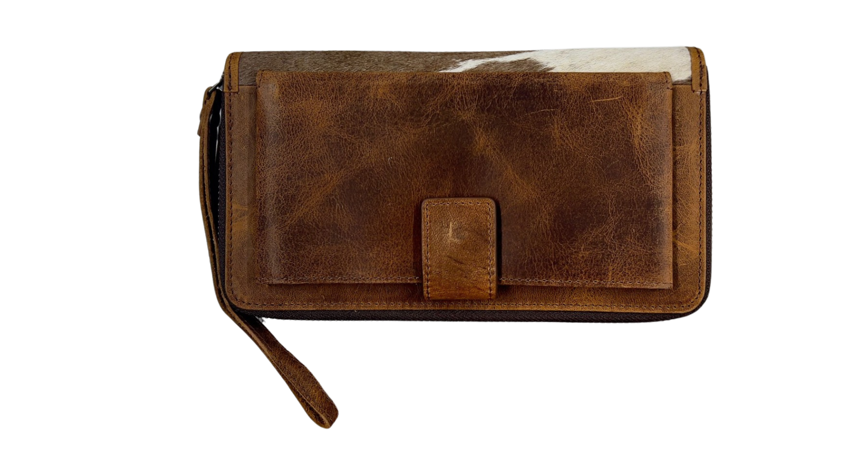 The Vaquero Collection features large rustic conchos reimagined with unique cowhide designs. Each piece is meticulously finished and embodied with a saddle tan and distressed full grain buckskin leather.