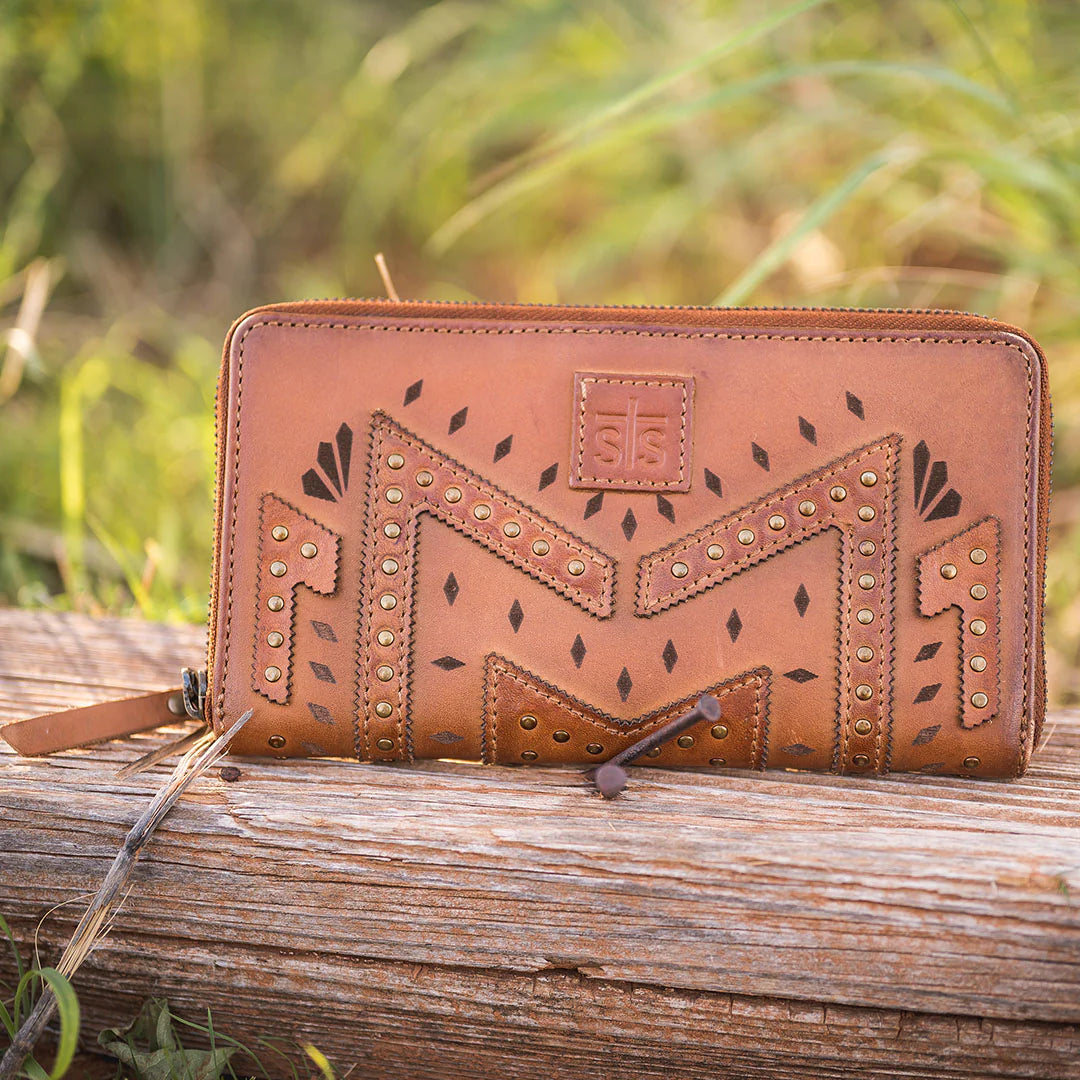 The Wayfarer Juniper Bifold is made with full grain, veg-tanned leather. Aztec pattern leather cutouts accent each piece with a unique pattern.