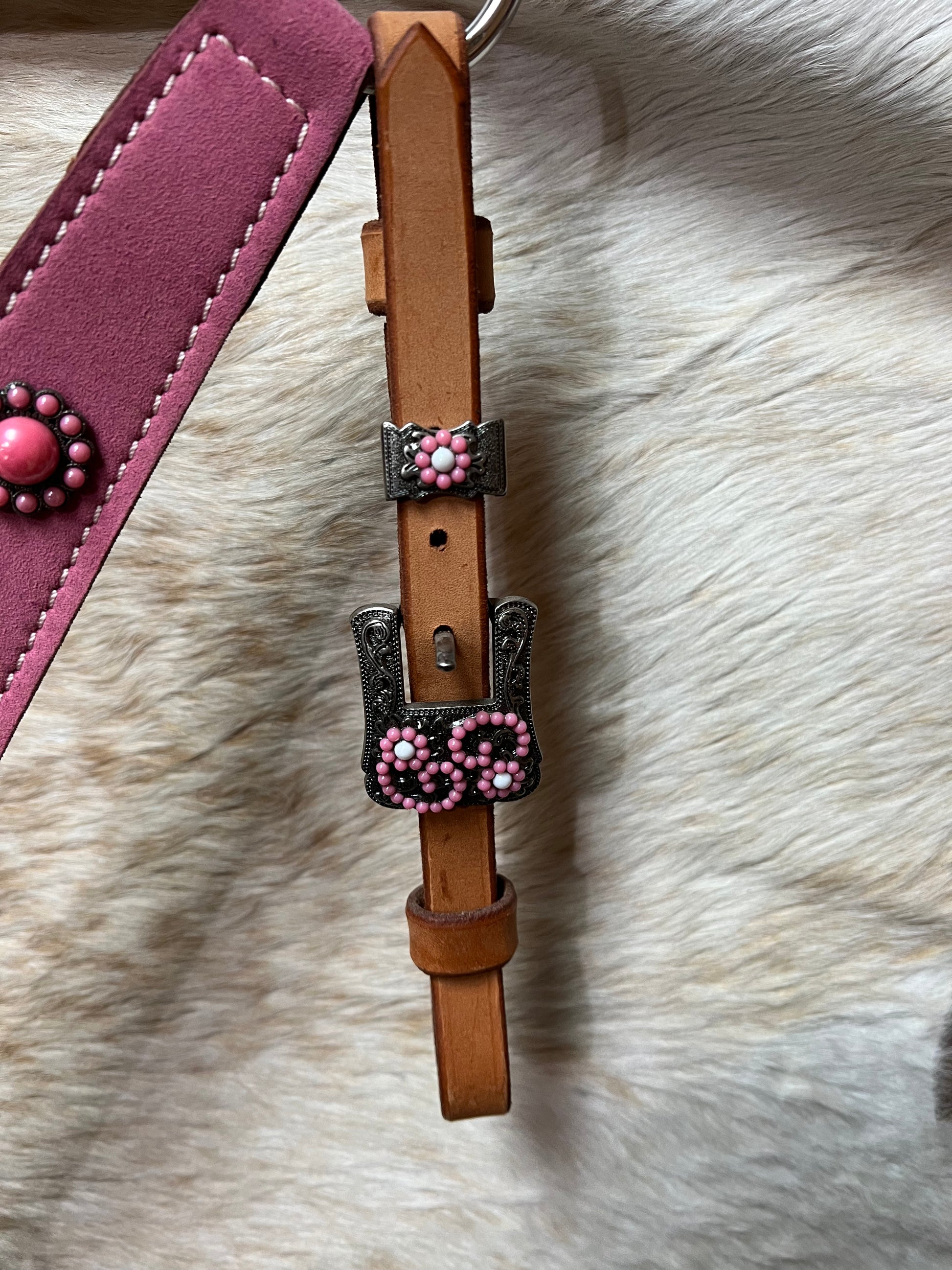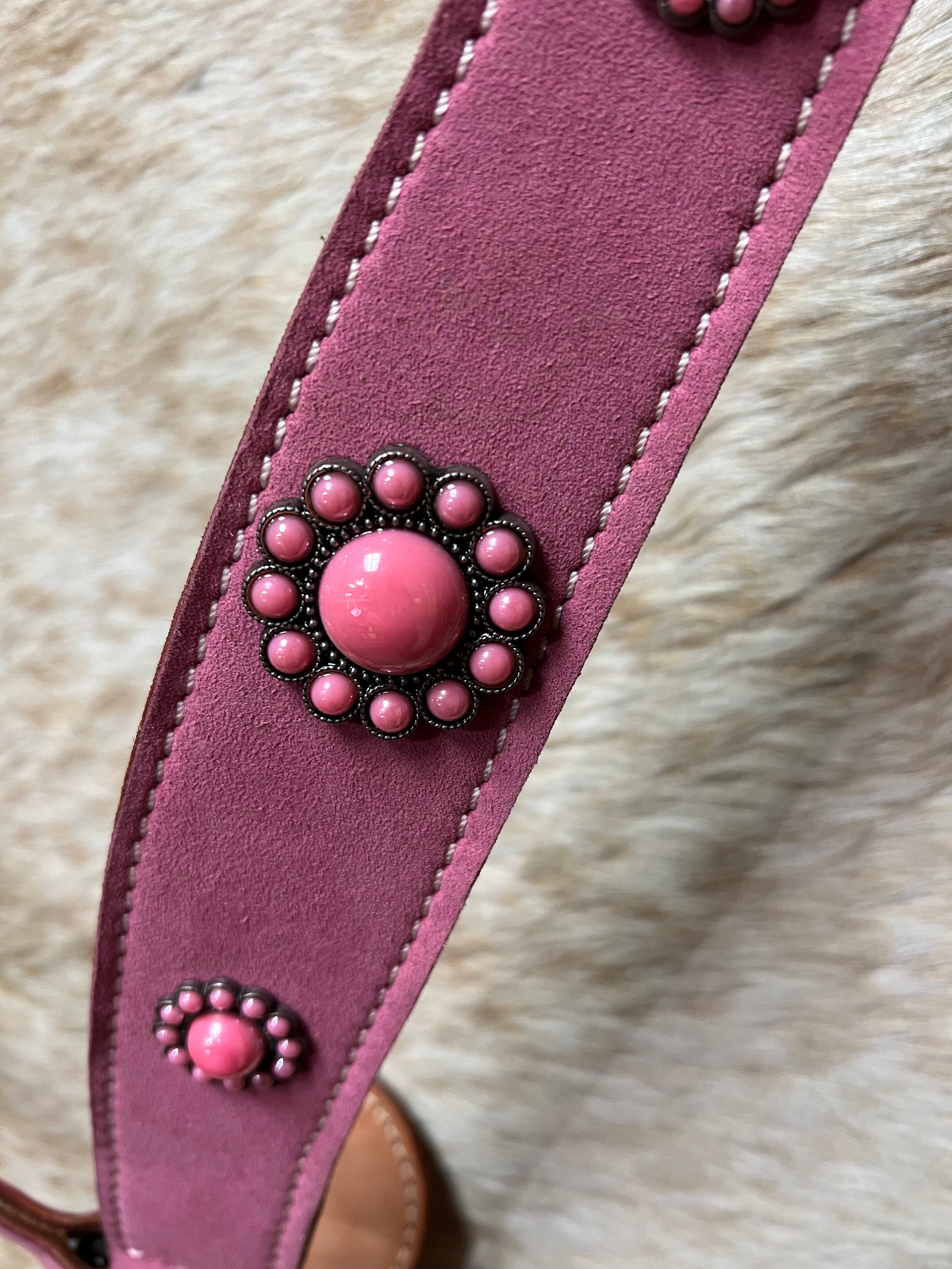 Triple "W" Breastcollar Pink Suede with Pink Conchos