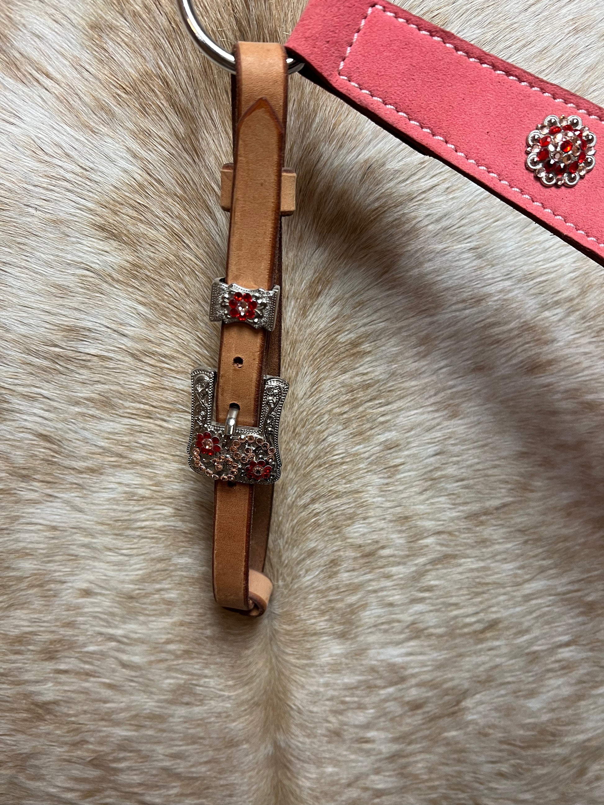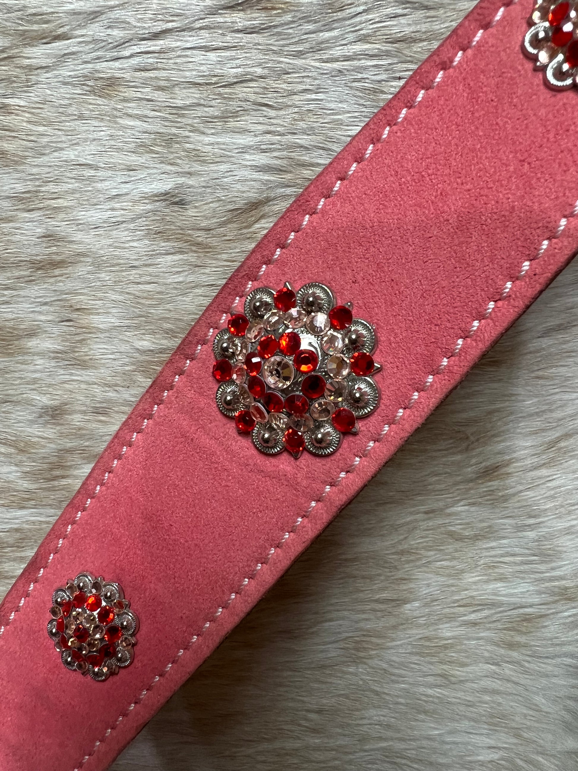 Triple "W" Breastcollar Pink Suede with White and Red Conchos