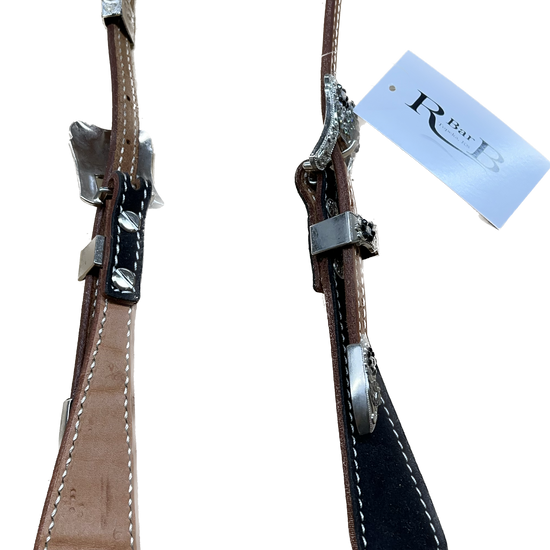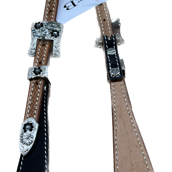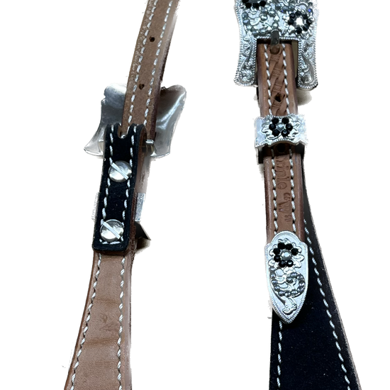 Triple "W" Sample Headstall With Basket Tooled, Black Suede Cheek and Black and White Crystals
