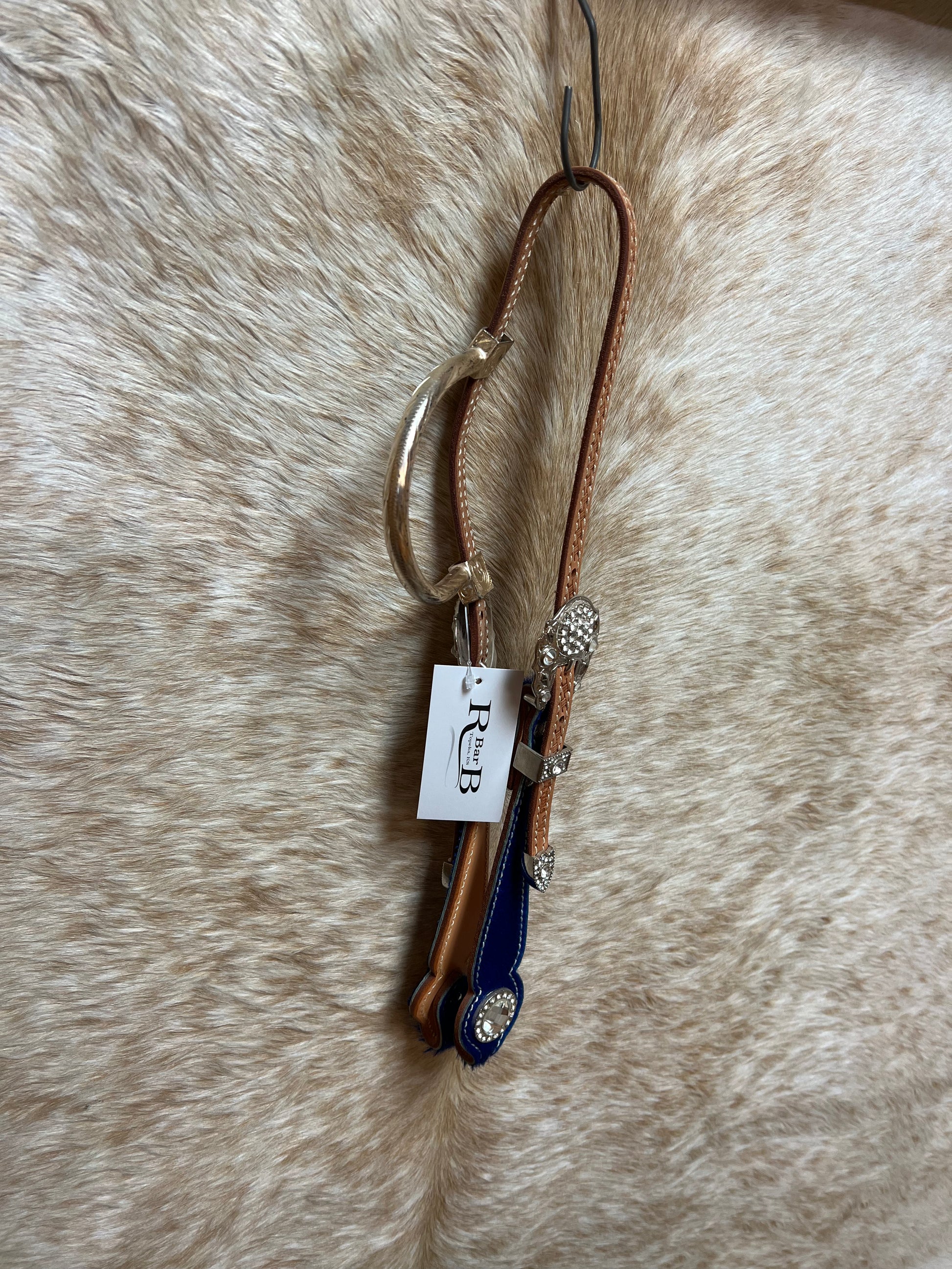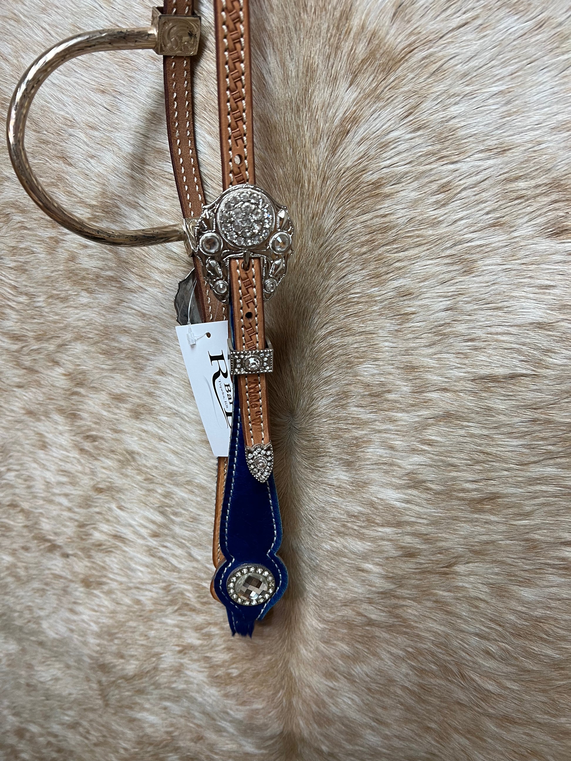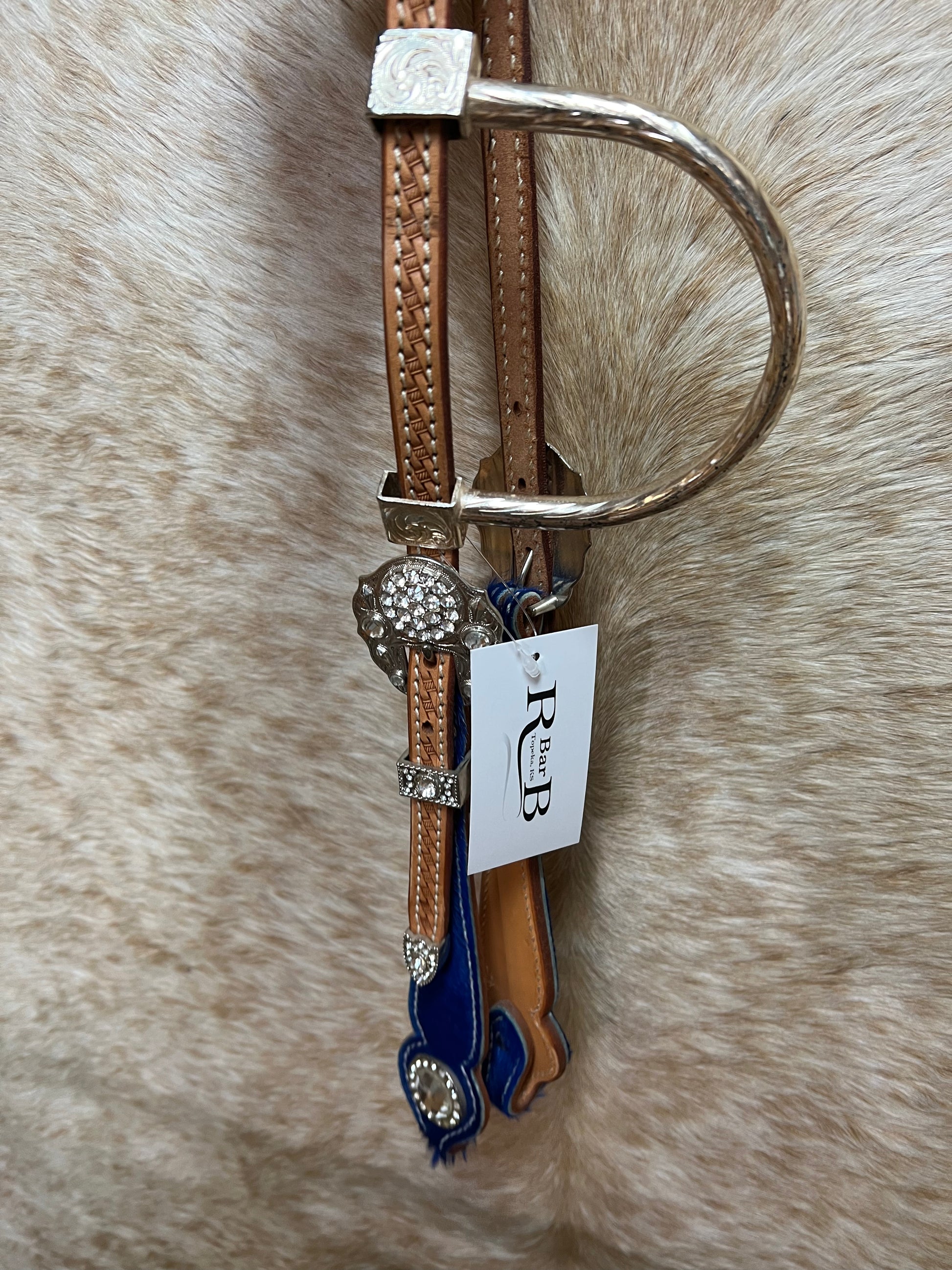 Triple "W" Silver One Ear With Blue Hair on With Crystal Conchos