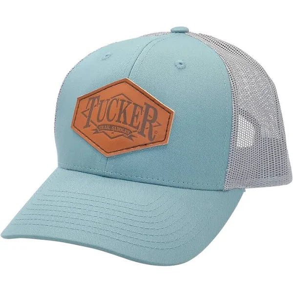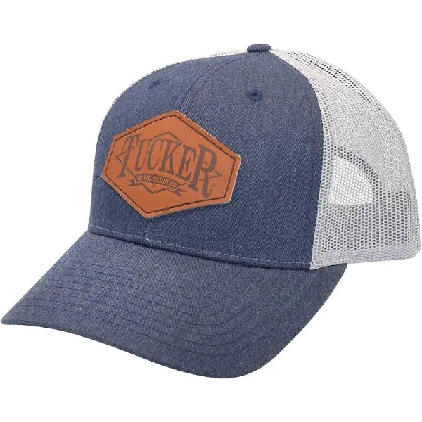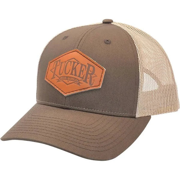 Tucker Saddlery's Leather Patch Ball Cap is a stylish, comfortable, and breathable accessory for any outdoor adventure. The classic Richardson style is tailor-made from a cotton-polyester blend, featuring a leather-etched patch displaying the Tucker brand and an adjustable snap closure at the back. Enjoy optimal fit with a slightly curved bill and just the right height in the crown. Perfect for both men and women.