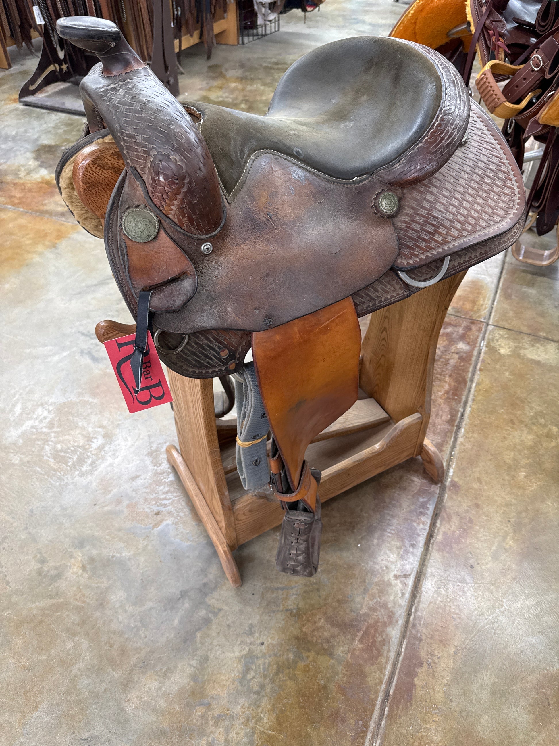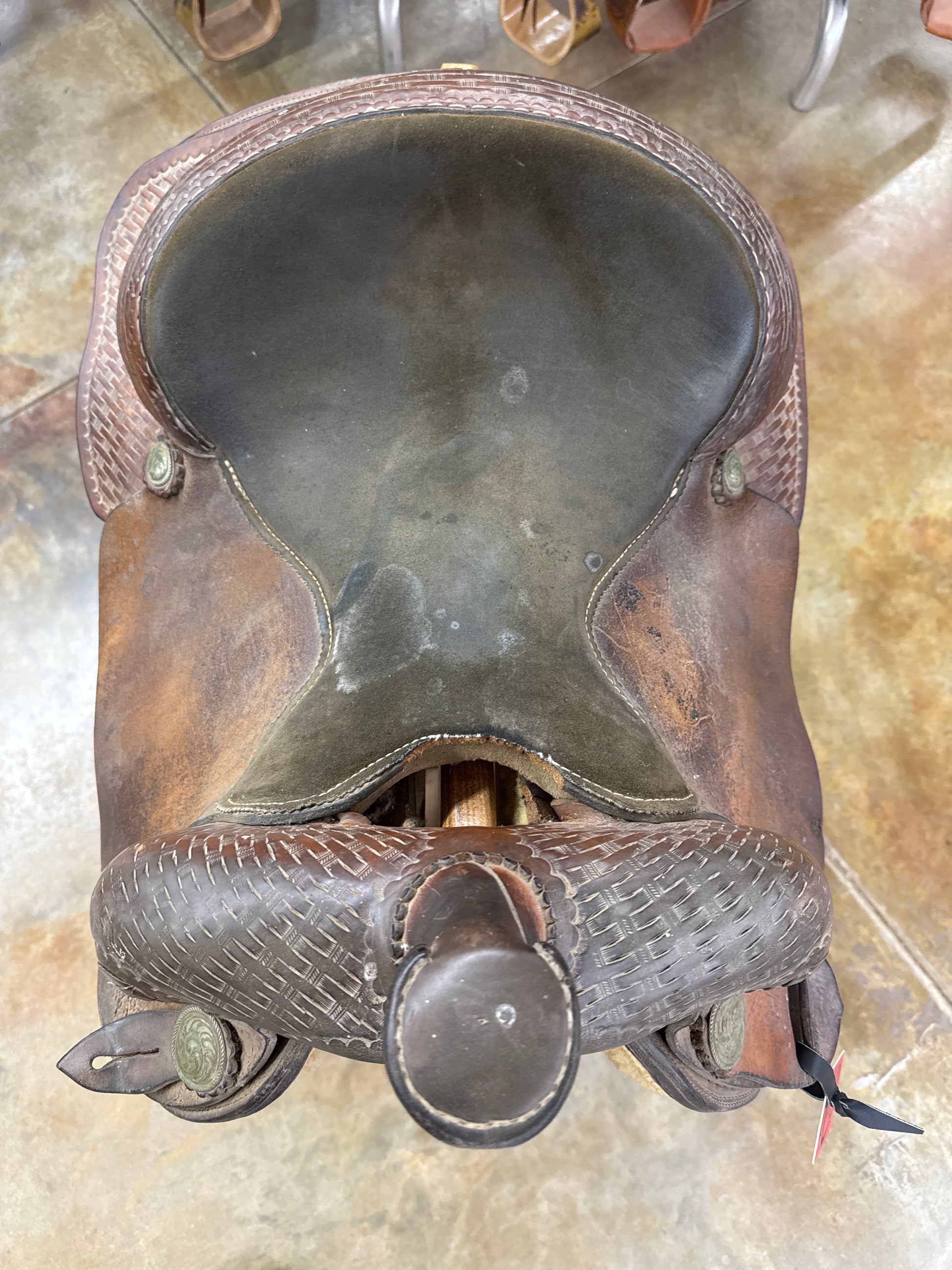 1/2 Tool Geometric Stamp, Suede Seat, Roughout Jockey, Smooth Fenders. Real Wool