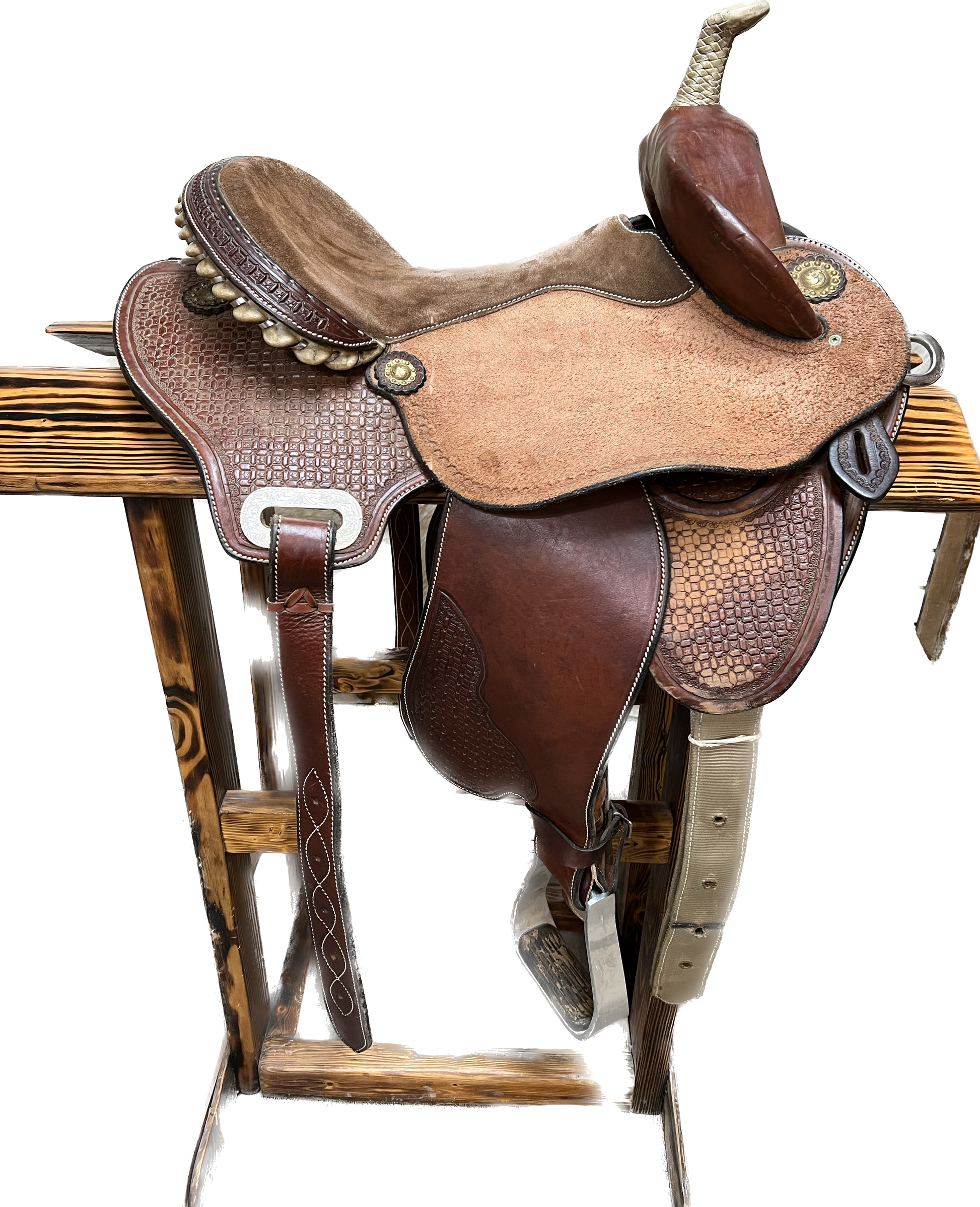 1/2 Tool Waffle, Padded Suede Seat, Rawhide Braided Horn, Rawhide Silver Laced Cantle