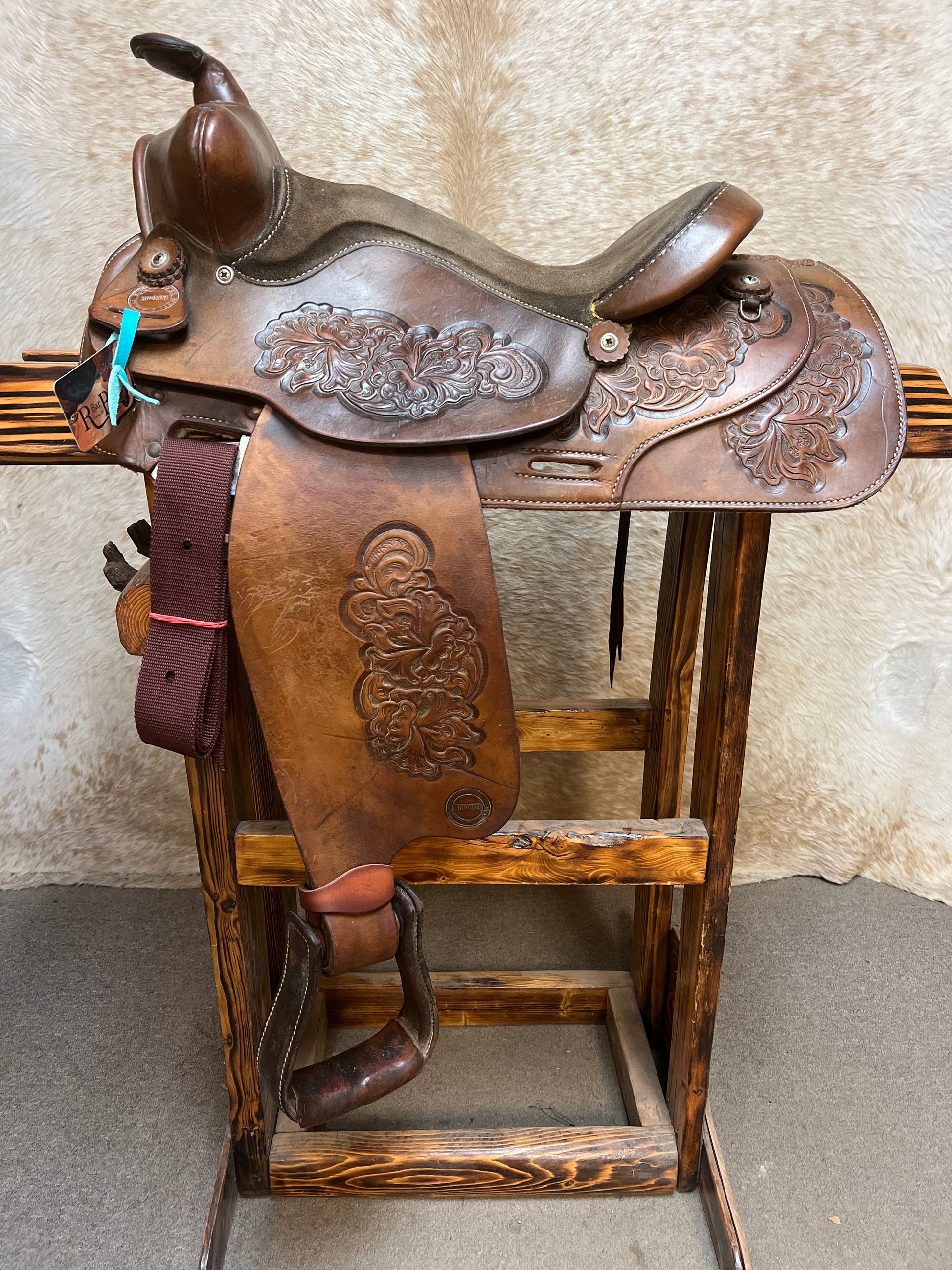 Spot Tool Floral, Smoothout, Brown Suede Padded Seat, Leather Covered Stirrups