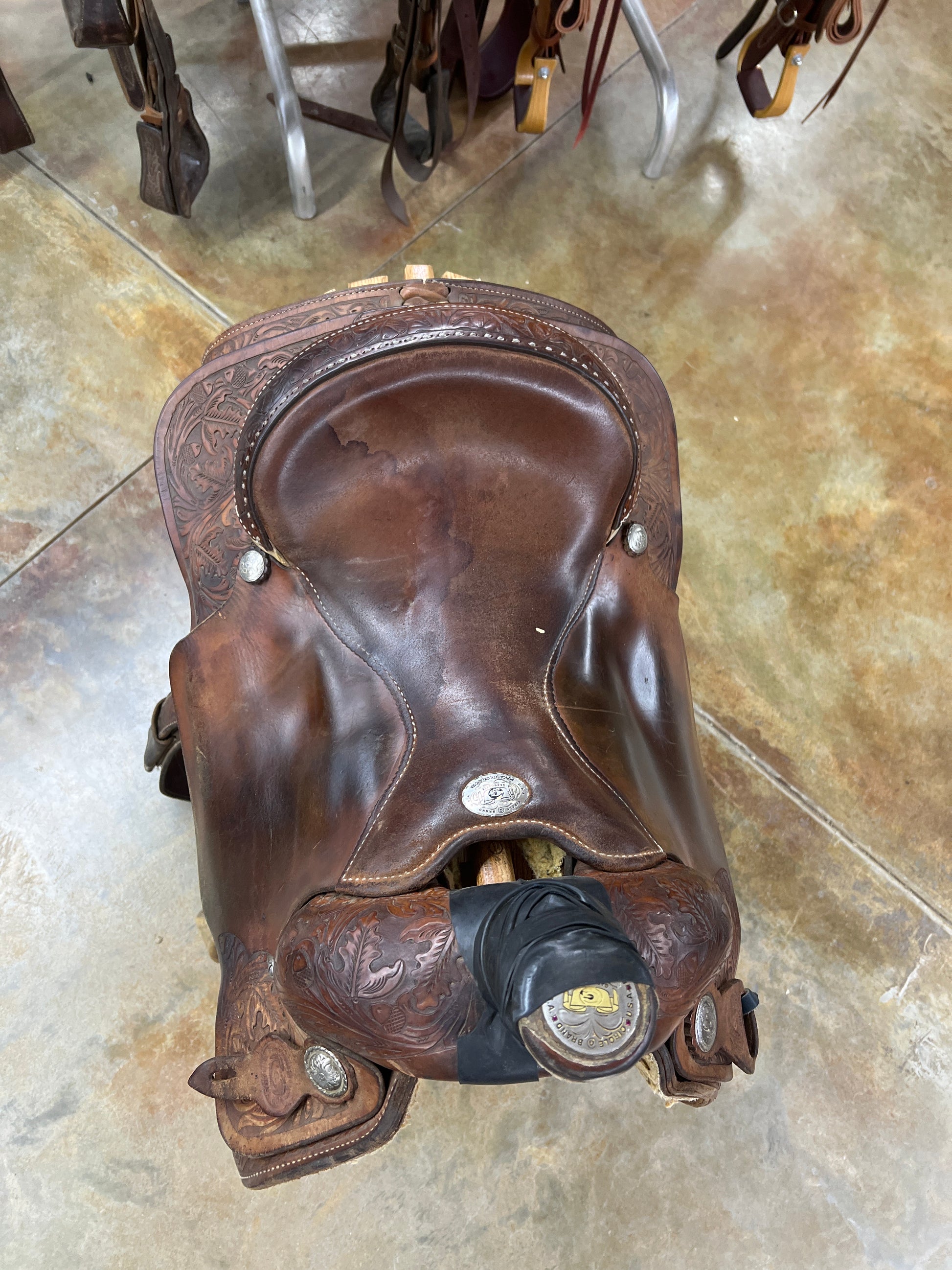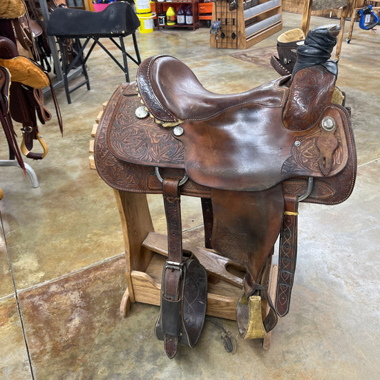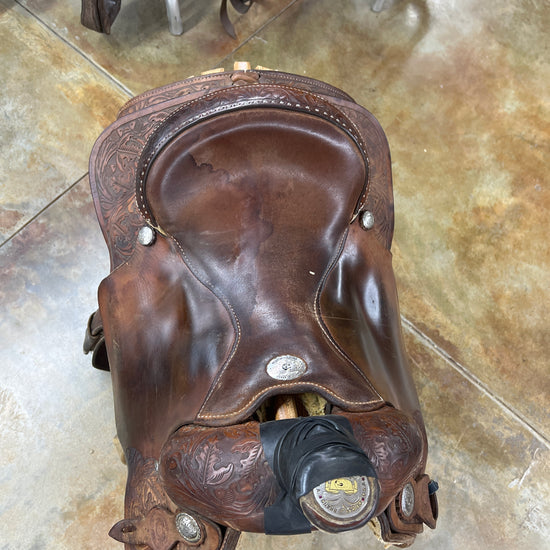 3/4 Tool Acorn/Oak, Smoothout Leather, Rawhide Silver Laced Cantle, Suede Seat, Rawhide Covered Stirrups