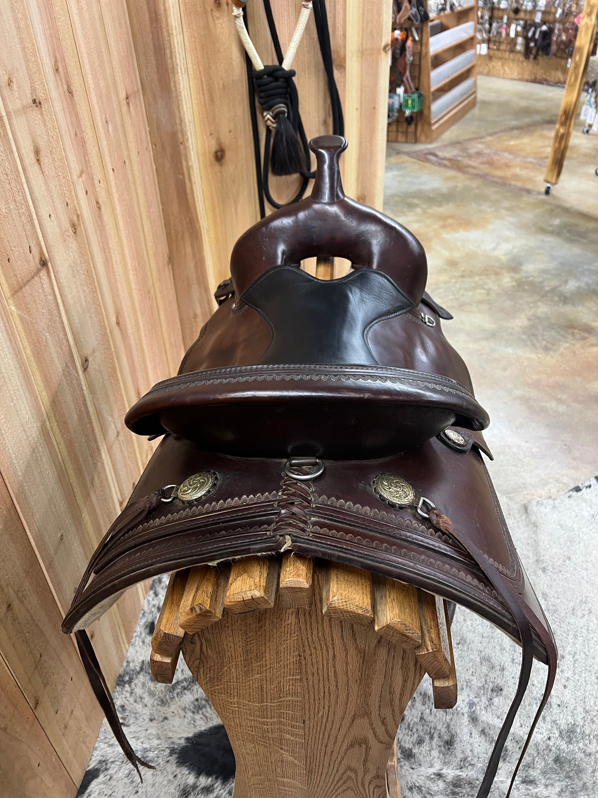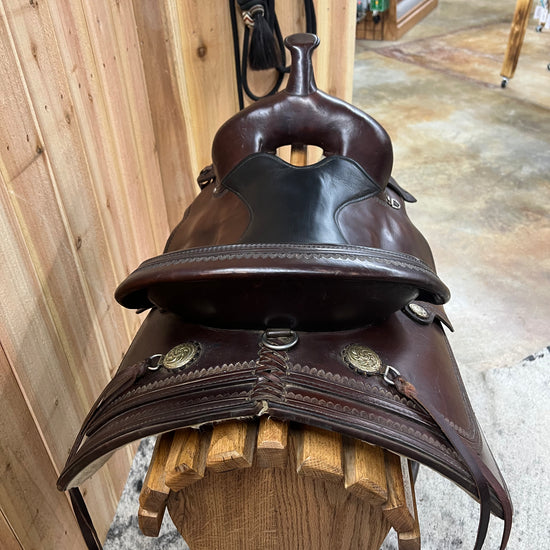 Smoothout Leather, Shell Border, Black Grainout Seat, Cheyenne Roll, Rear Strings, Leather Covered/Sewn Stirrups
