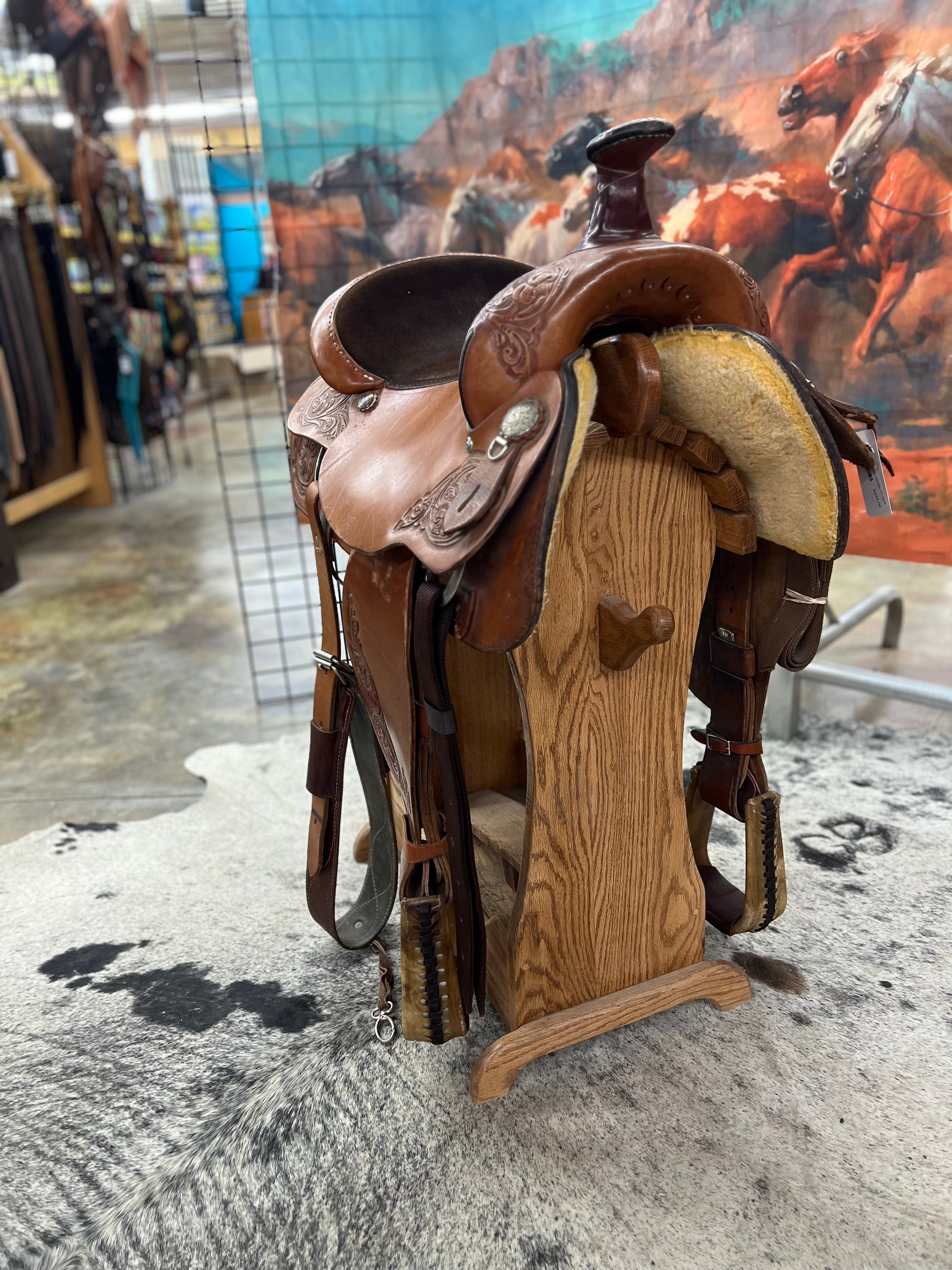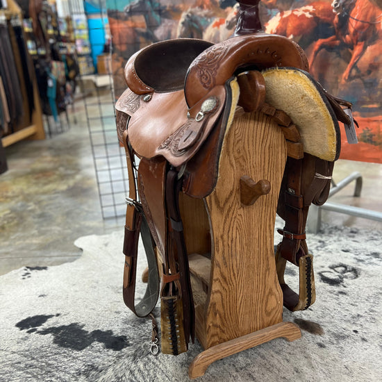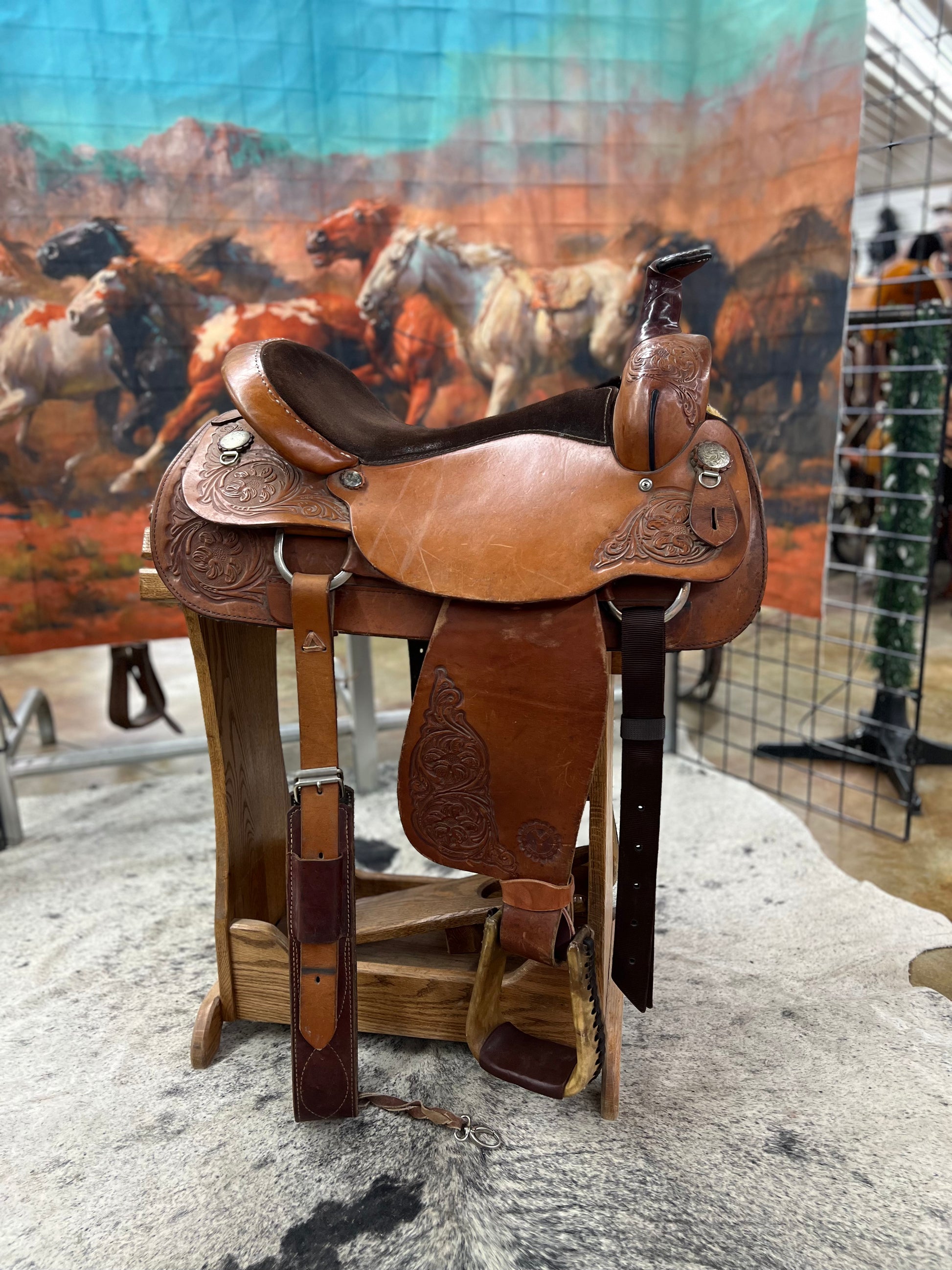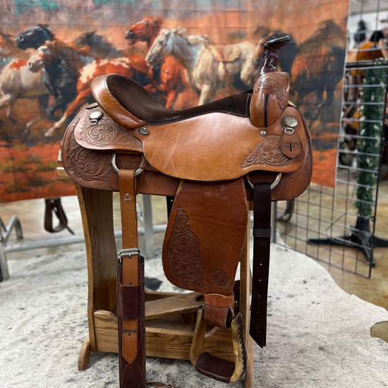Spot Tooled Floral, Smoothout Leather, Chocolate Suede Padded Seat, Cheyenne Roll, Rawhide Covered/Laced Stirrups