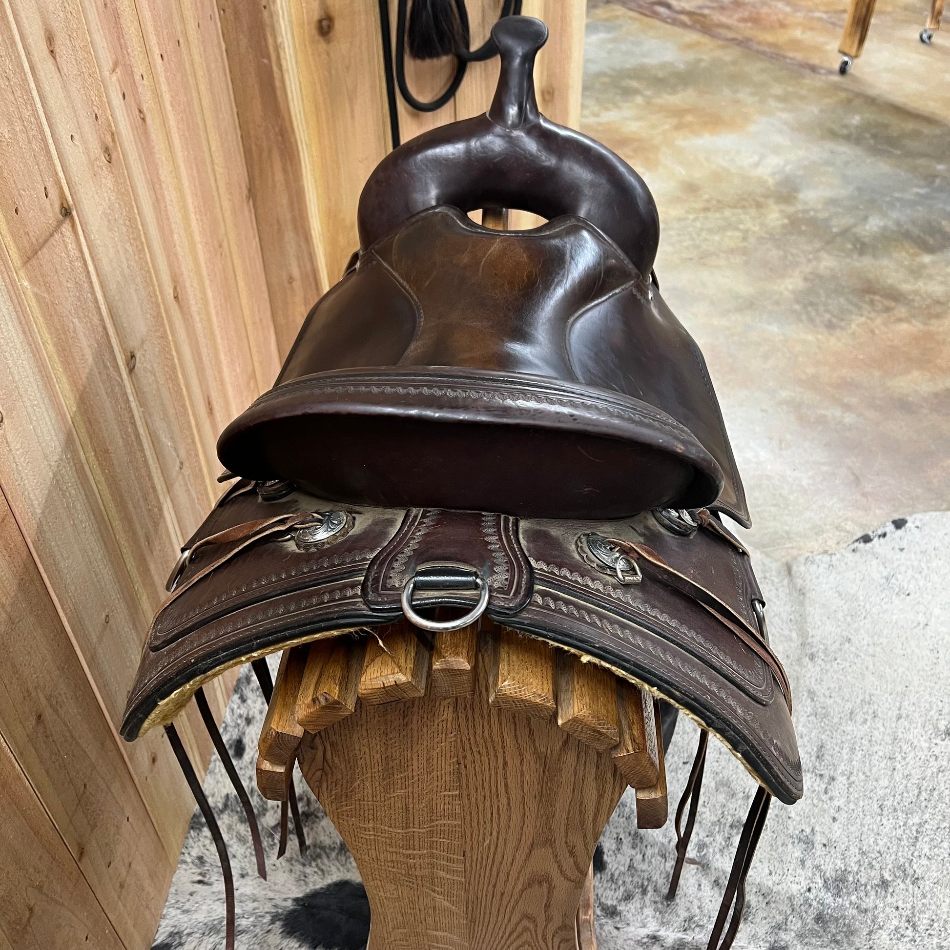 Smoothout Leather, Shell Border, Padded Grainout Seat, Saddle Strings, Leather Covered/Sewn Stirrups
