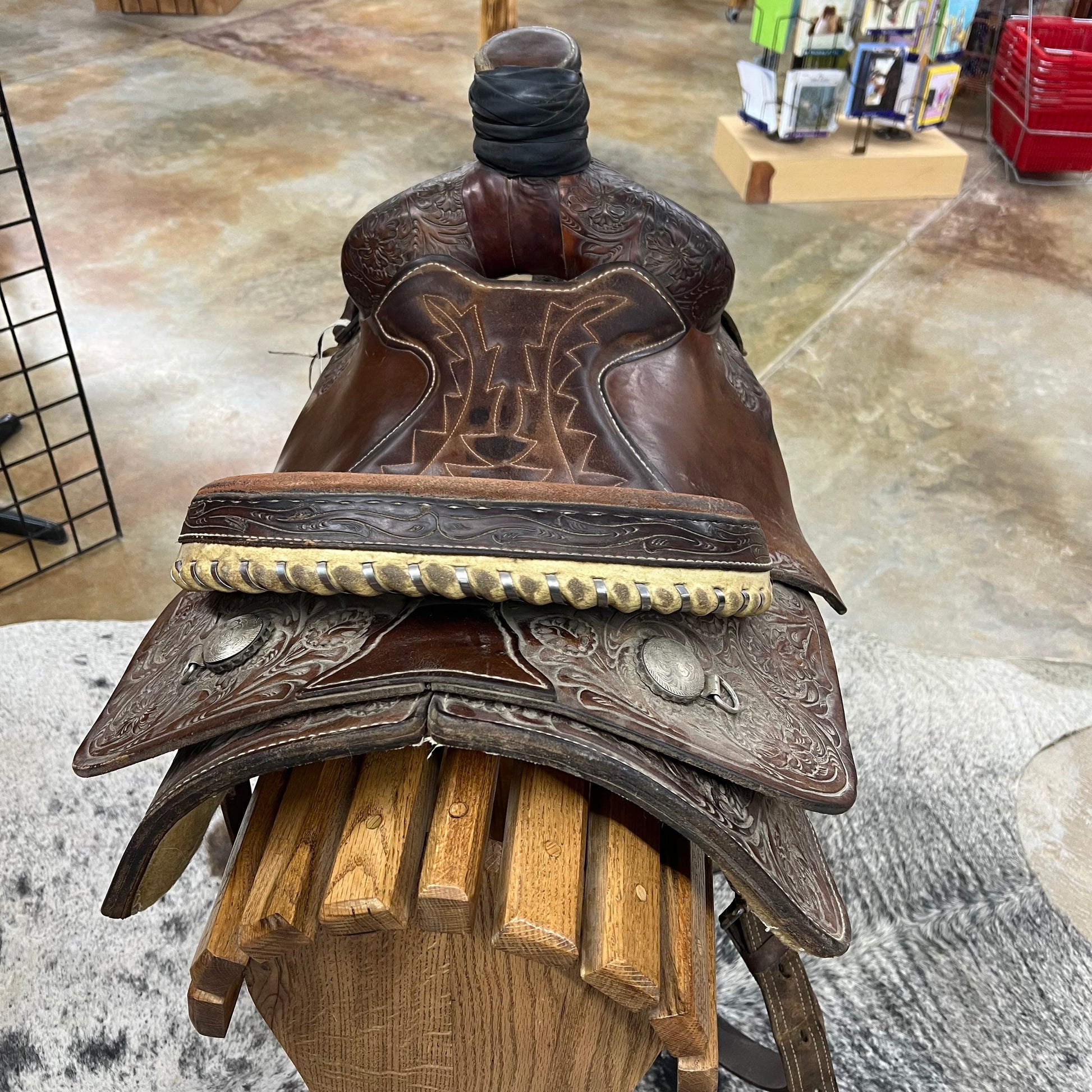 3/4 Tool Floral, Smoothout Leather, Suede Quilted Seat, Rahwide Silver Laced Cantle, Aluminum Stirrups