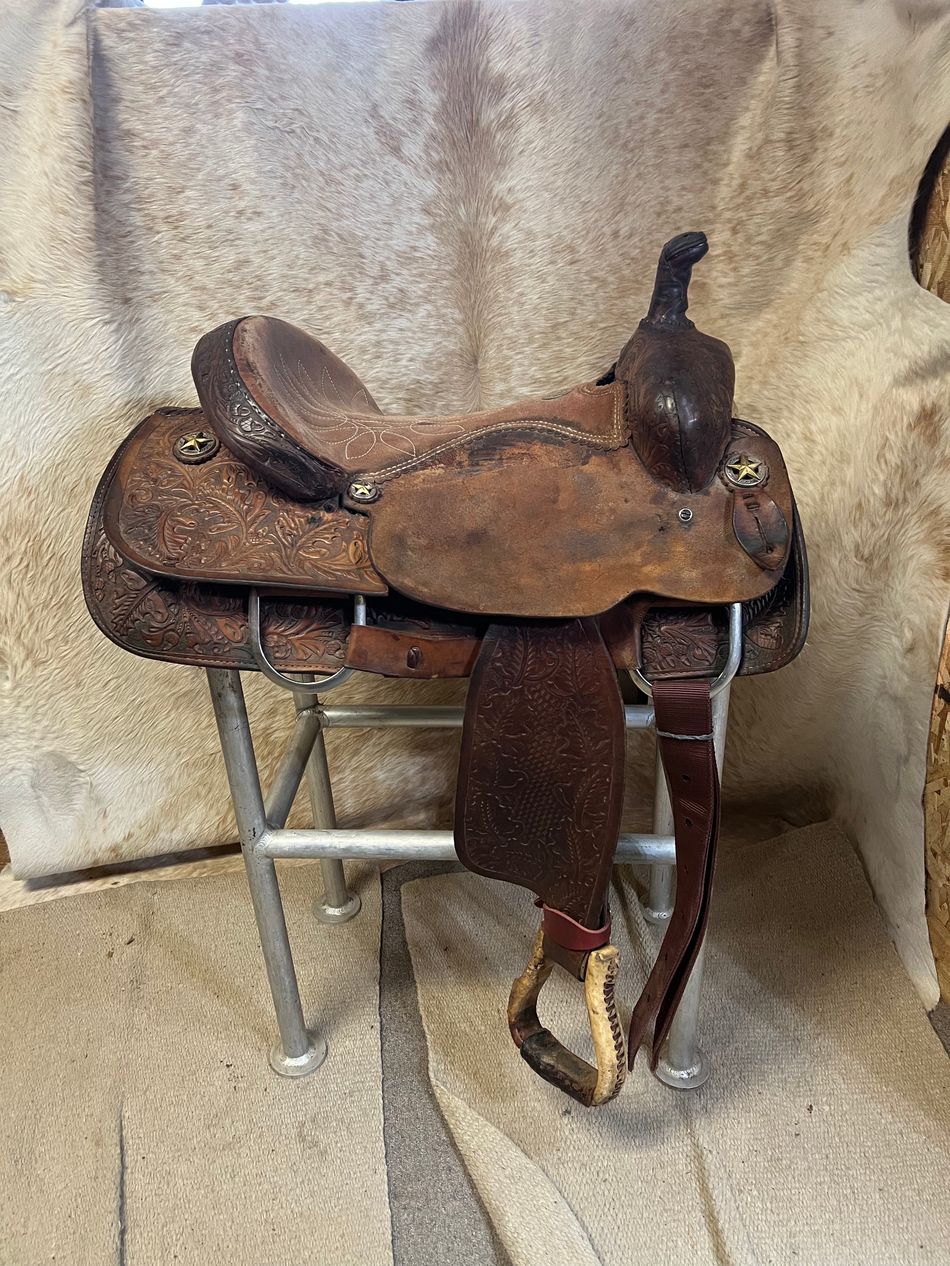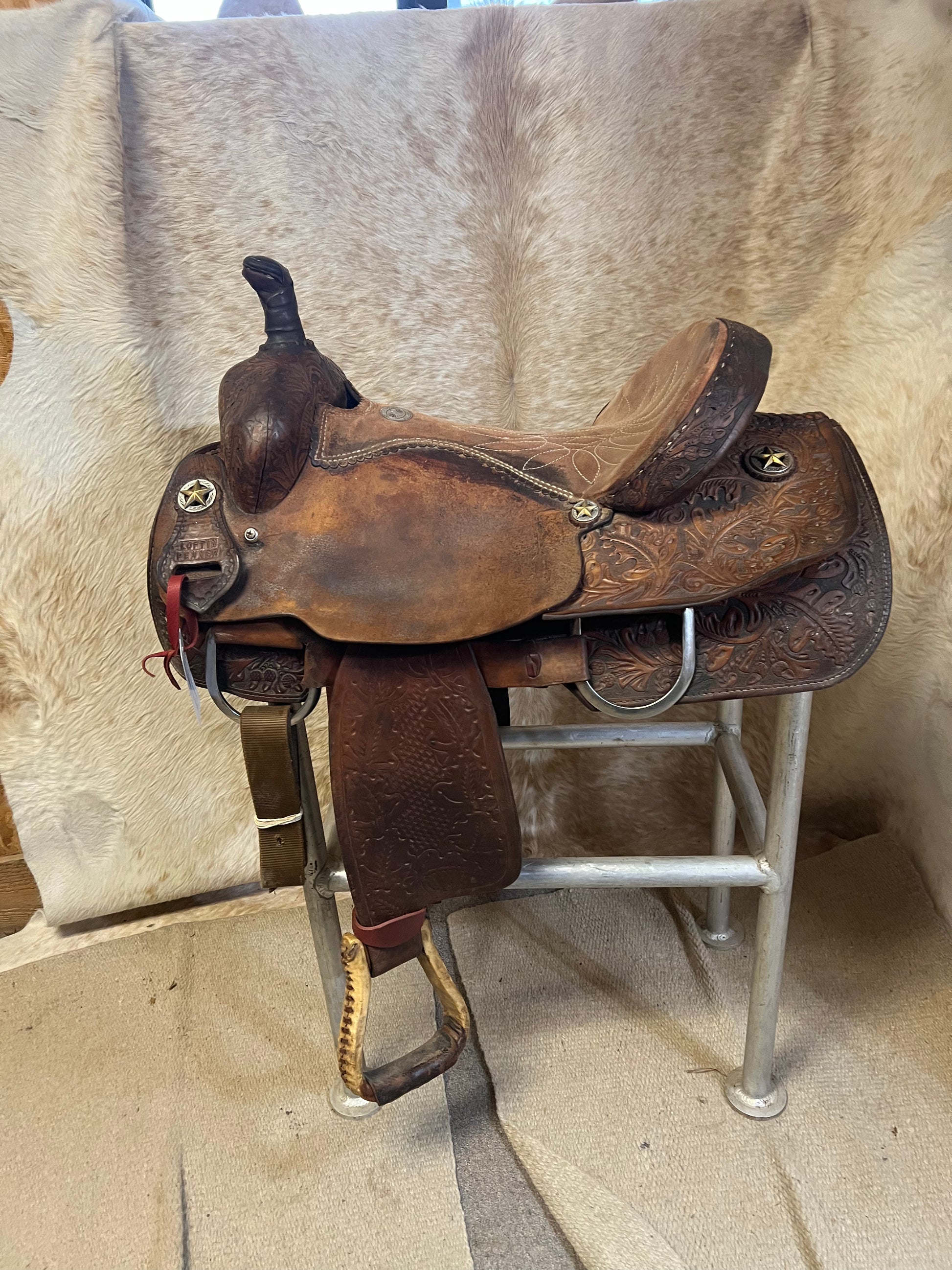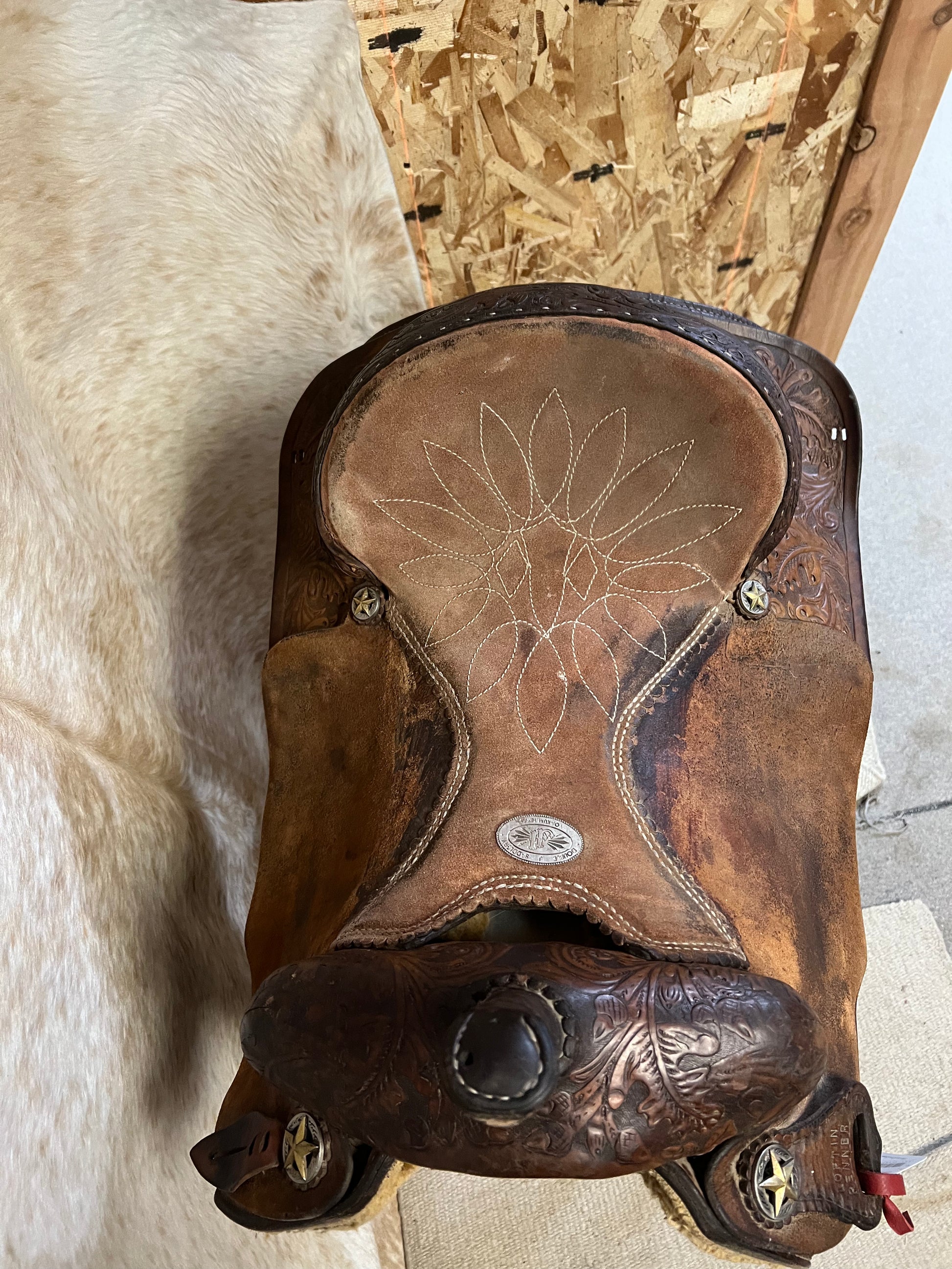 7/8 Tool Acorn/Oak, Suede Pop Stitched Seat, Texas Star Conchos