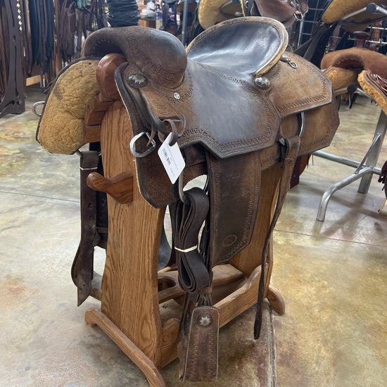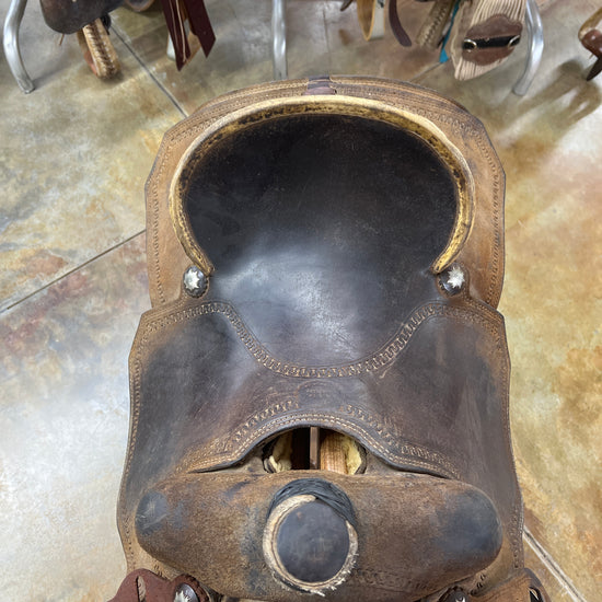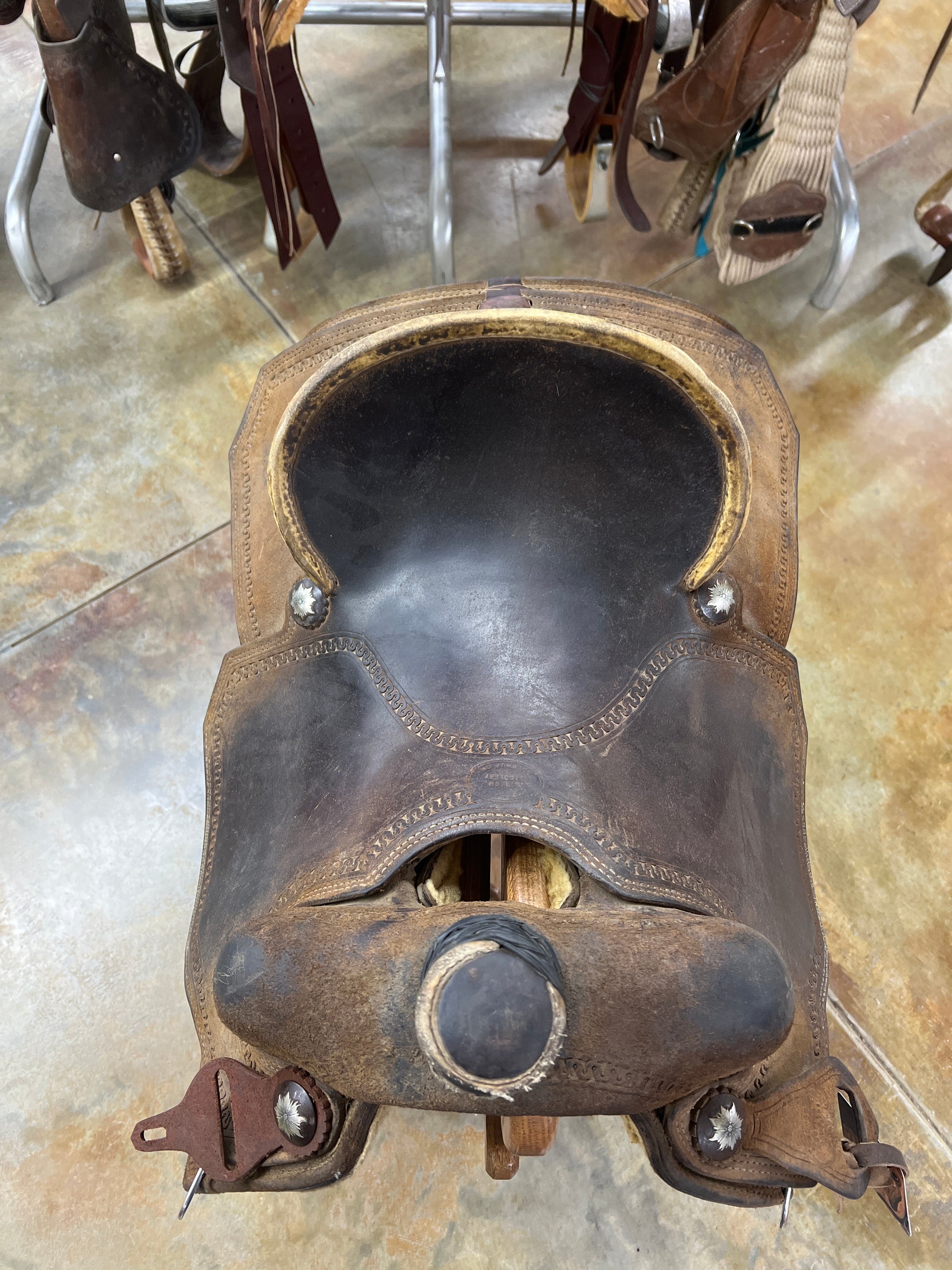 All Roughout, Running W Border, Hard Seat, Rawhide Pencil Roll, Leather Covered Stirrups, Bradstreet Custom Conchos