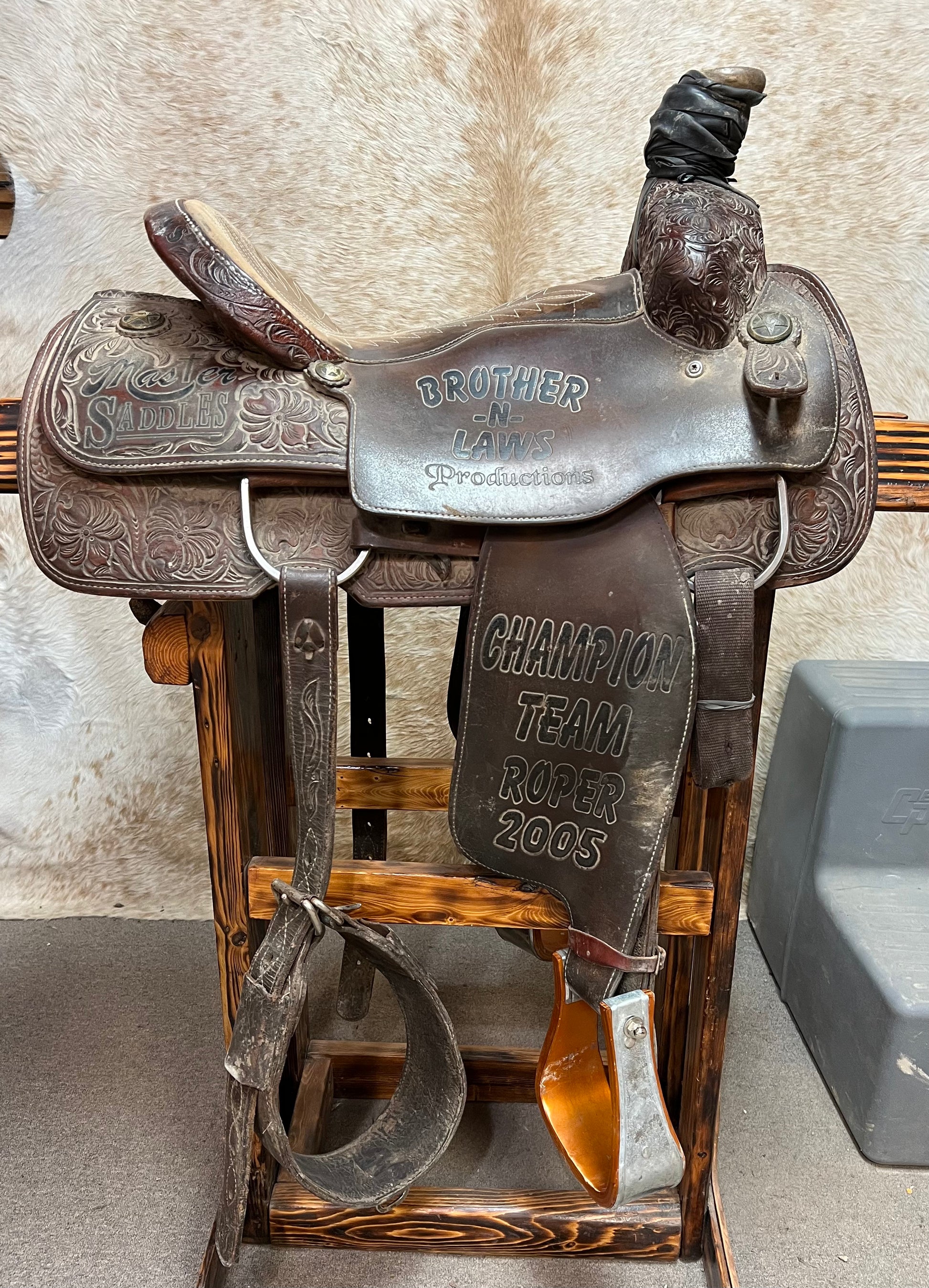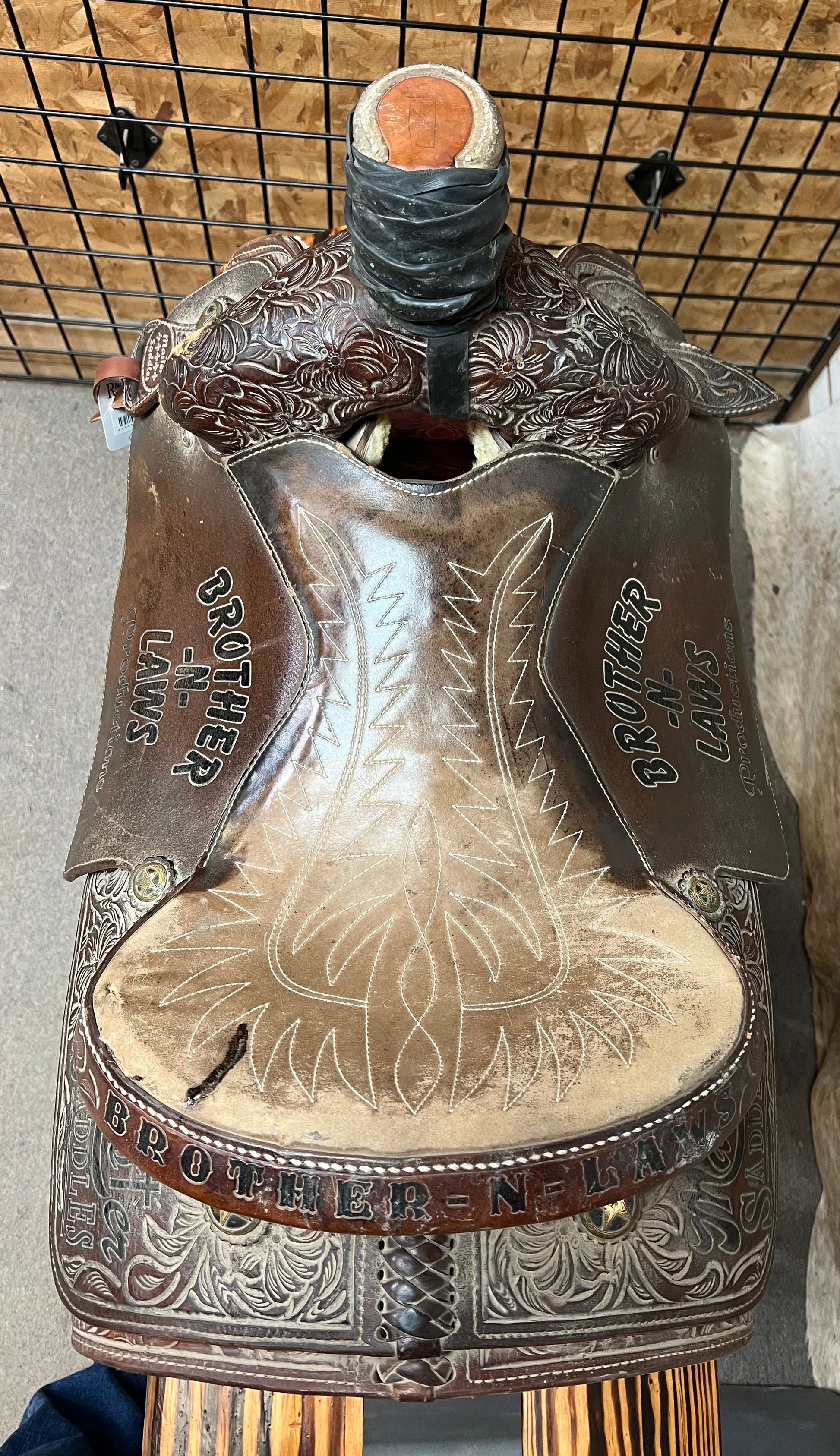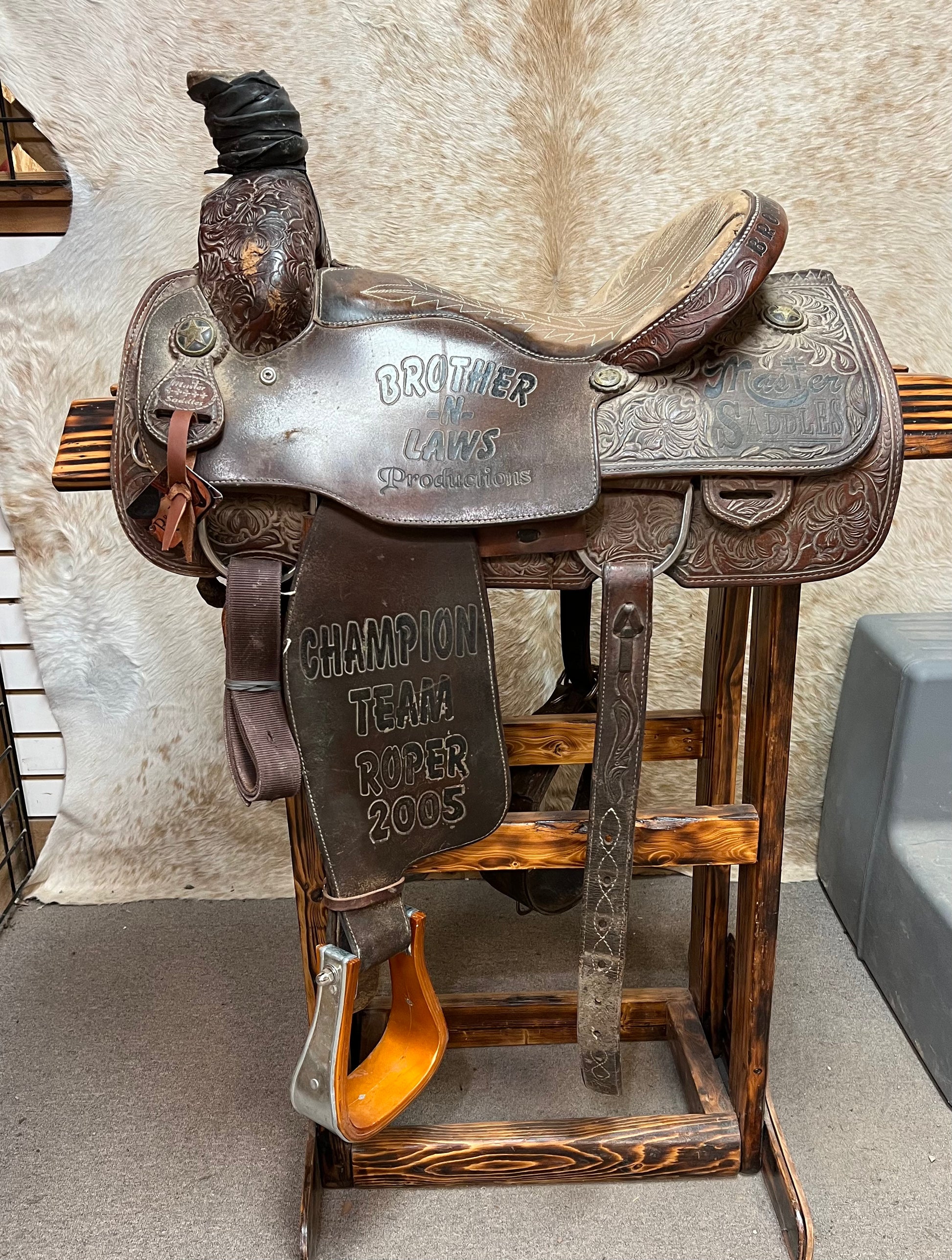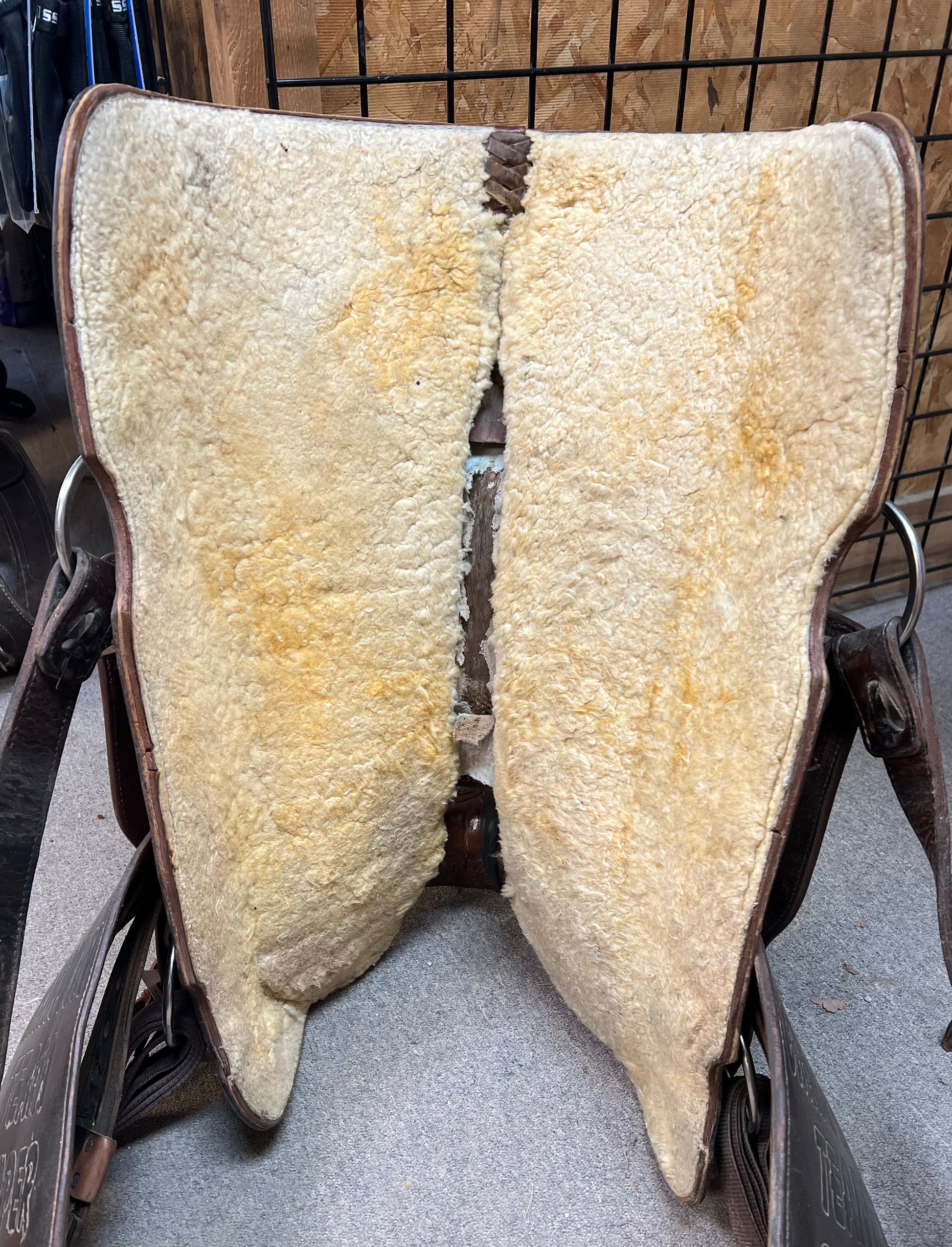 1/2 Tool Floral, Suede Seat, Slanted Stirrups-Metal Wrapped Wood
