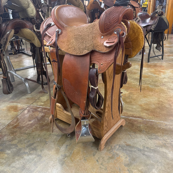 3/4 Tool Basket, Roughout Seat/Jockey, Grainout Inlaid Seat, Cheyenne Roll, Saddle Strings, Stainless Covered Monel Style Stirrups