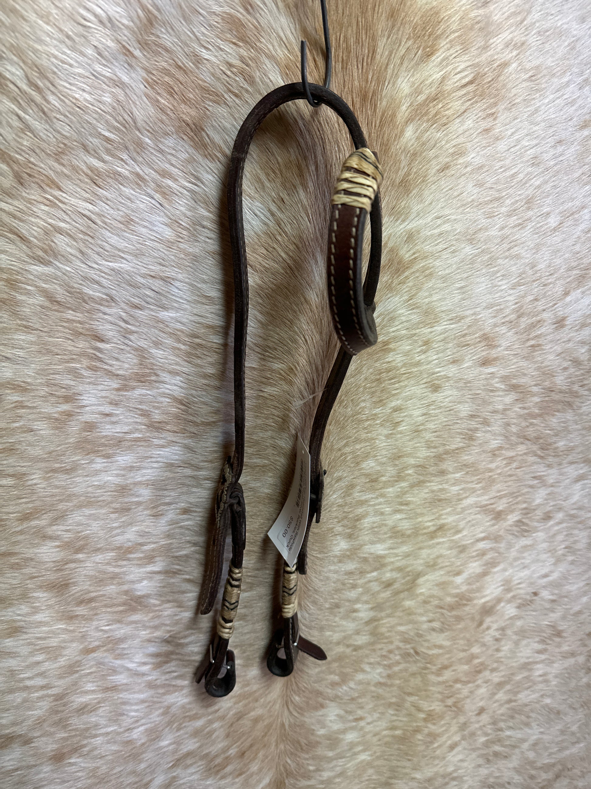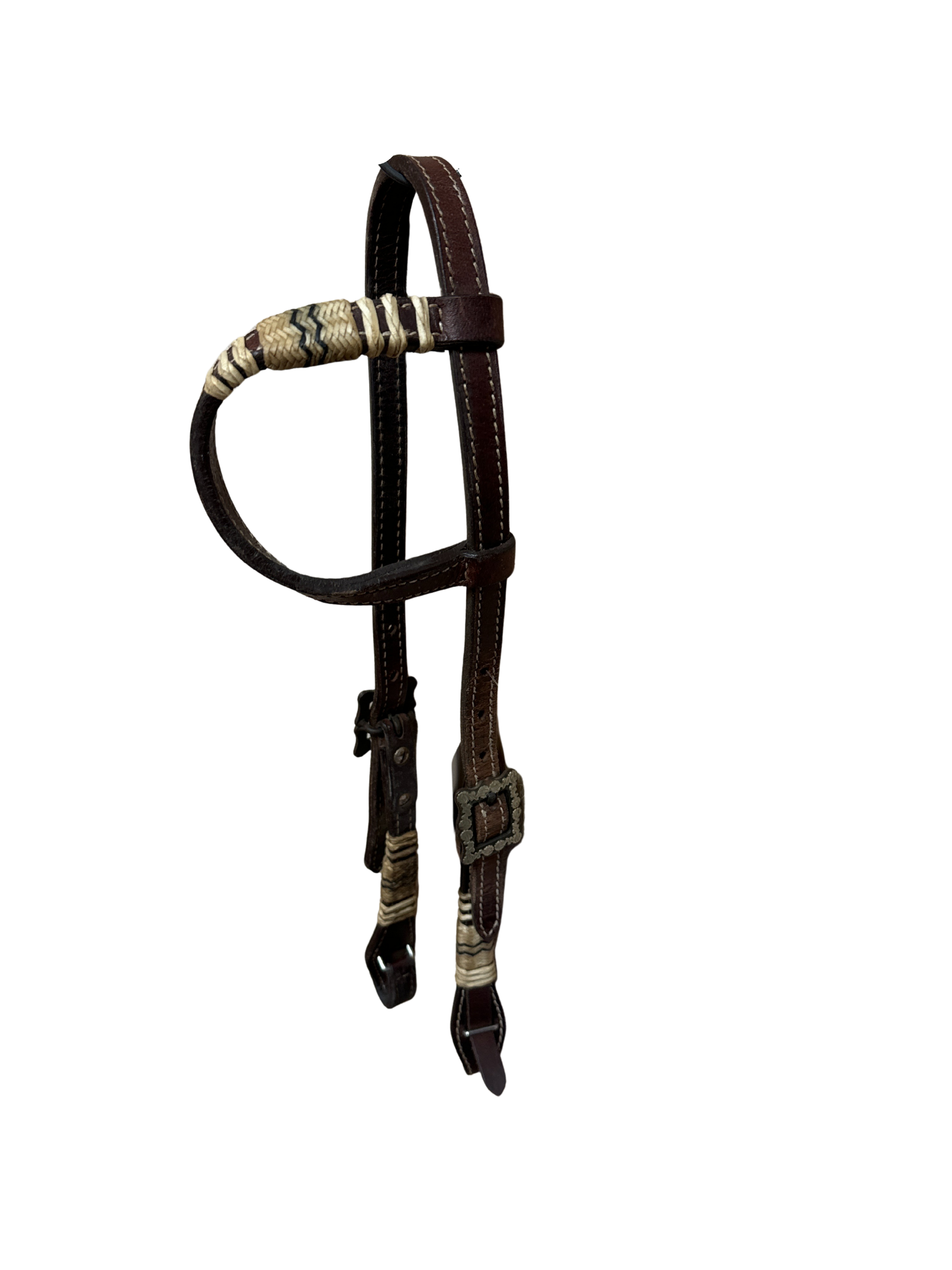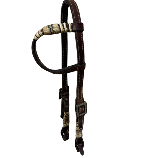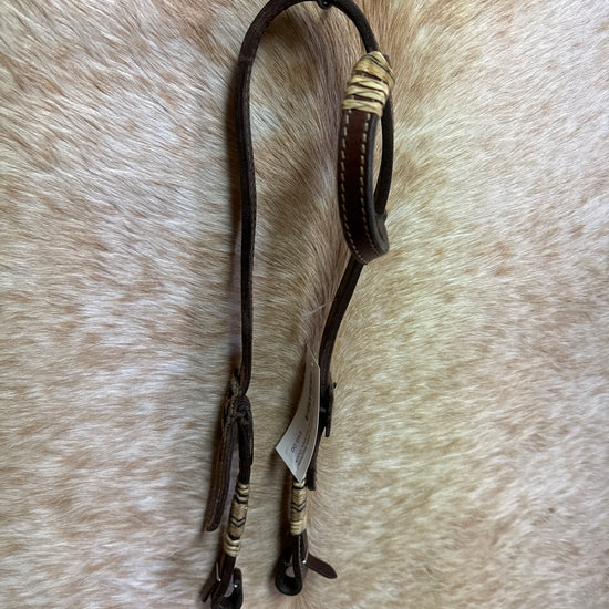 Used One Ear Headstall With Rawhide and Brown Steel/Silver Buckles, Quick Change Bit Ends