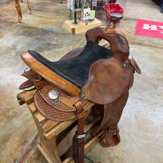 1/2 Tool Basket Stamp, Smoothout Leather, Black Suede Seat, Leather Covered/Laced Stirrups