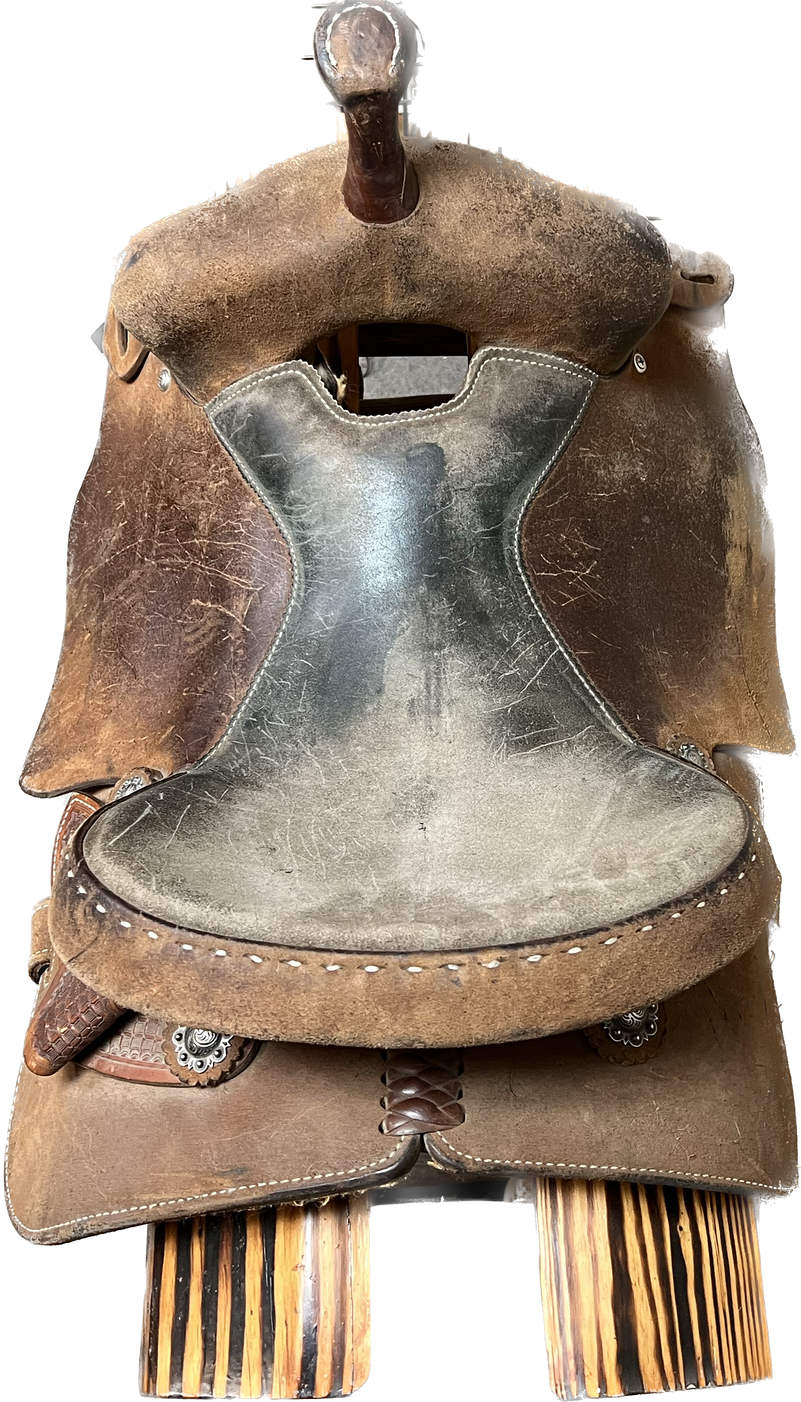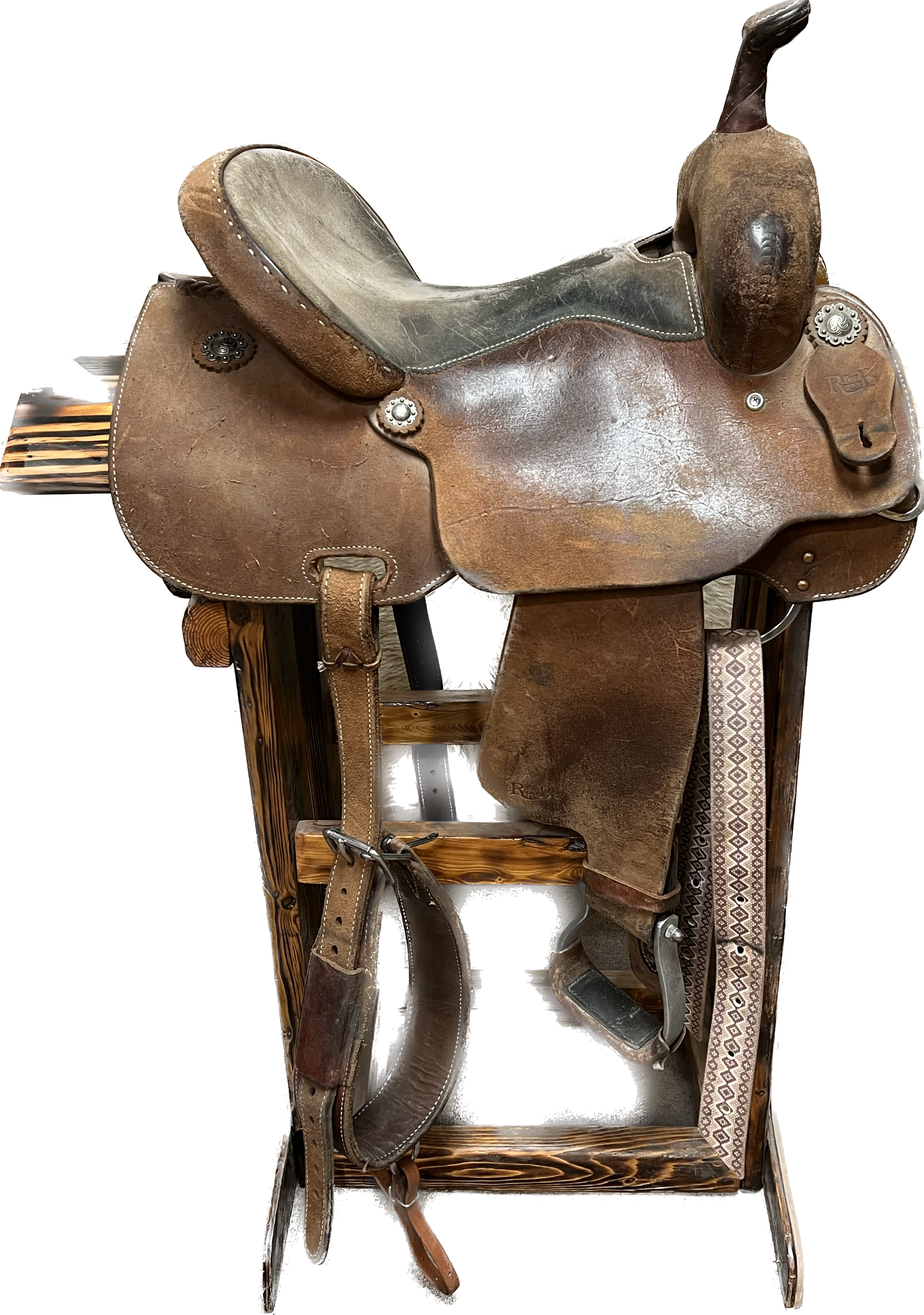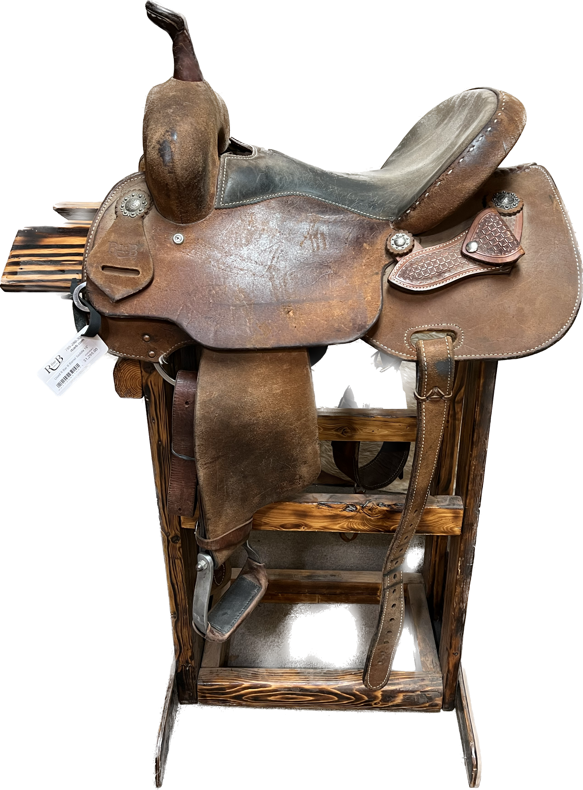 Used R Bar B Barrel Saddle 15", All Roughout, Suede Seat