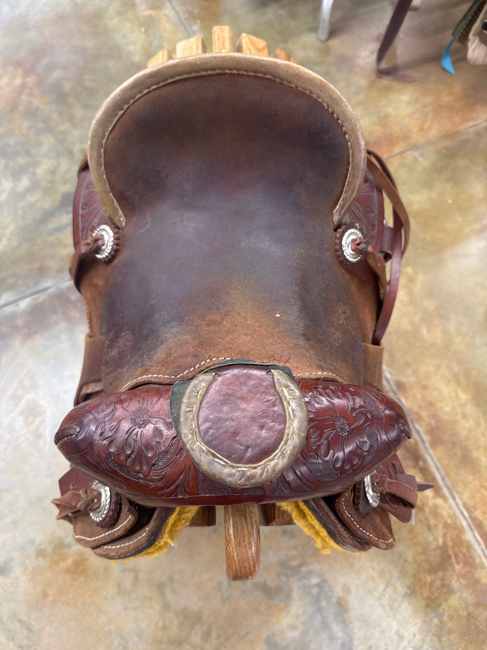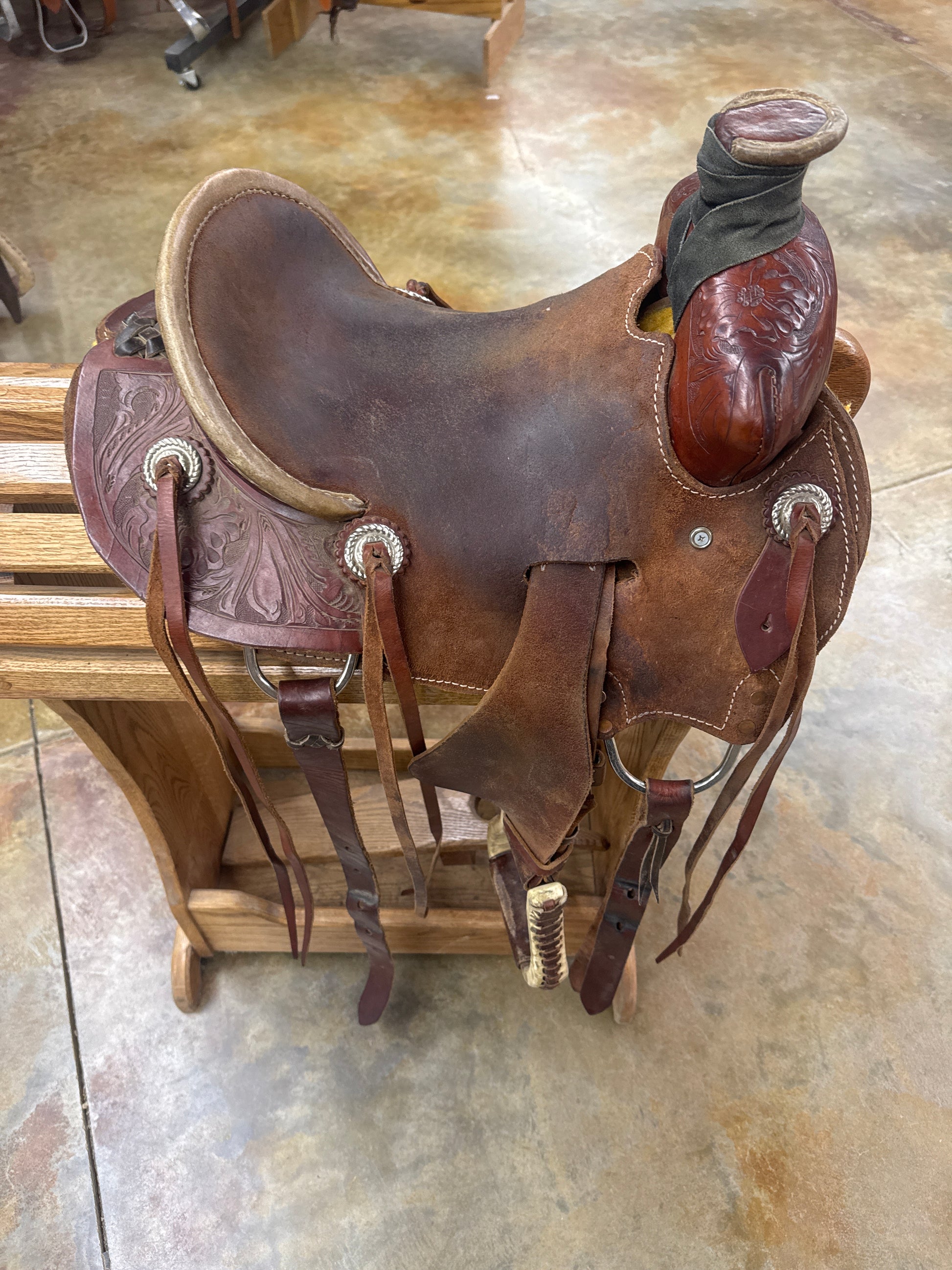 1/4 Tool Floral, Hard Seat, Roughout Seat/Jockey/Fender, Rawhide Pencil Roll, Saddle Strings, Rawhide Covered Stirrups