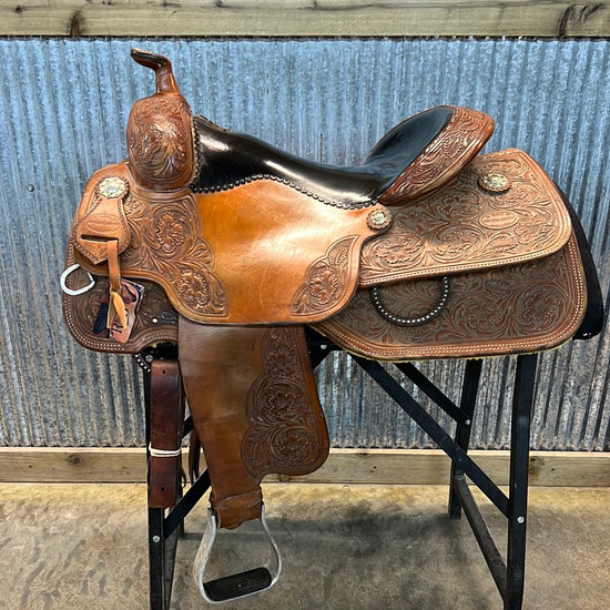 3/4 Floral tooling, black grainout seat, dotted hardware