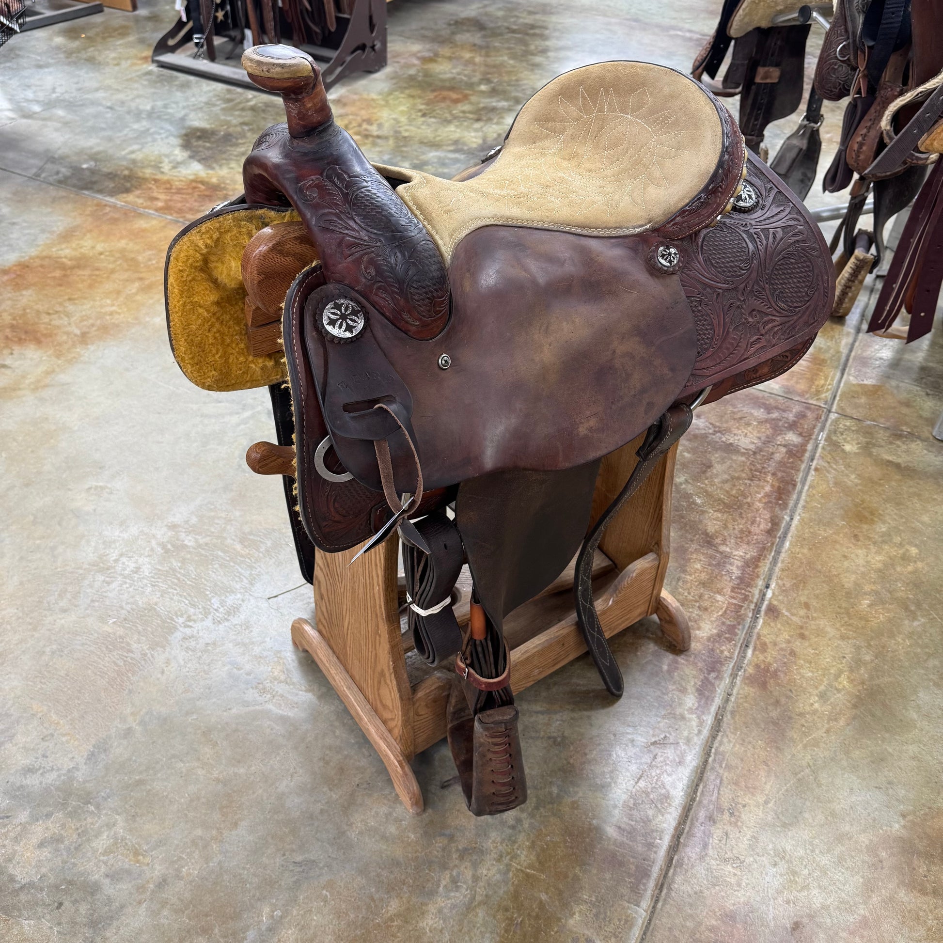1/2 Tool Combo, Tan Suede Stitched Seat, Rawhide Silver Laced Cantle, Leather Covered/Laced Roper Stirrups