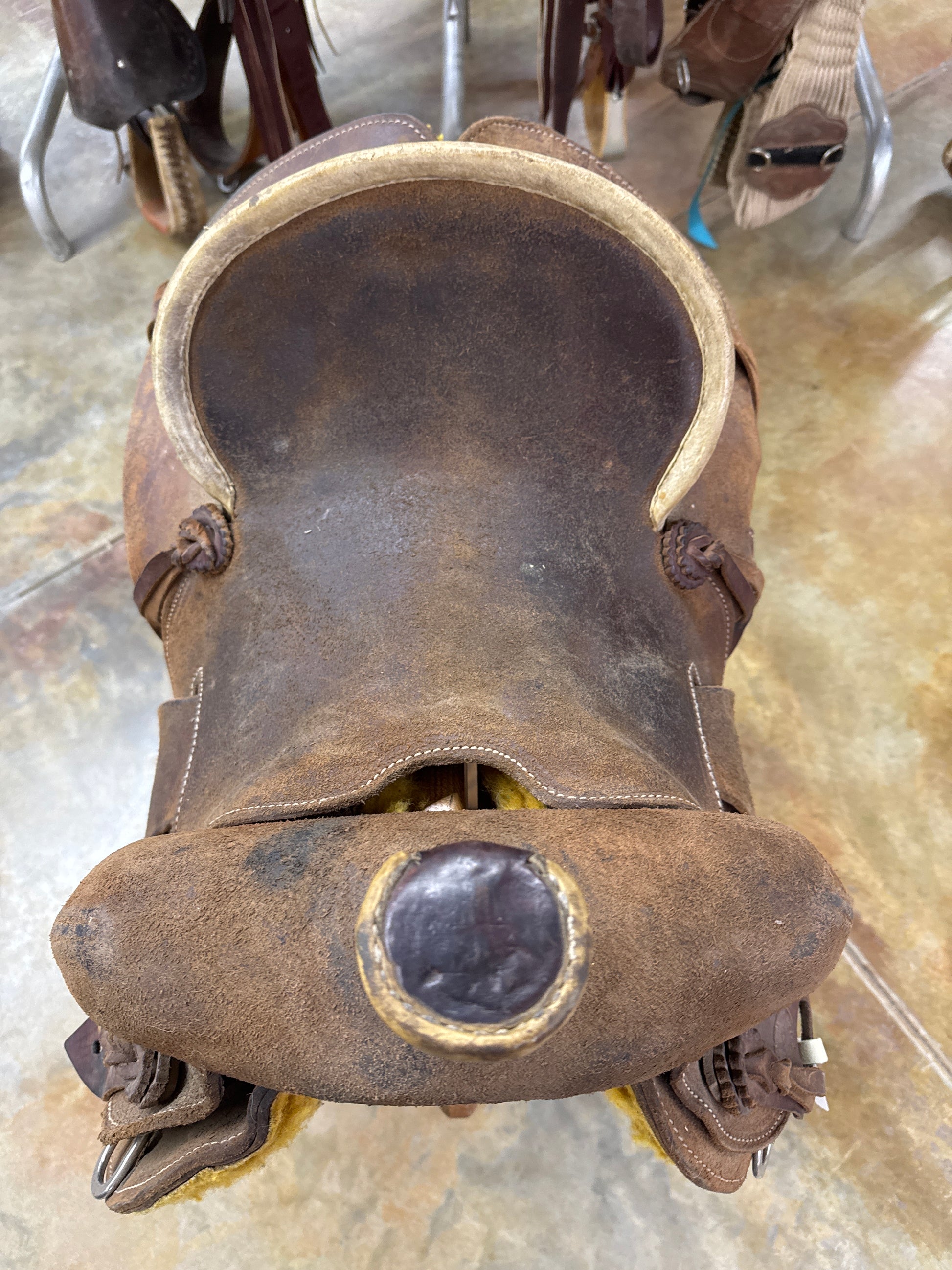 All Roughout, Hard Seat, Rawhide Pencil Roll, Saddle Strings, Rawhide Covered Stirrups