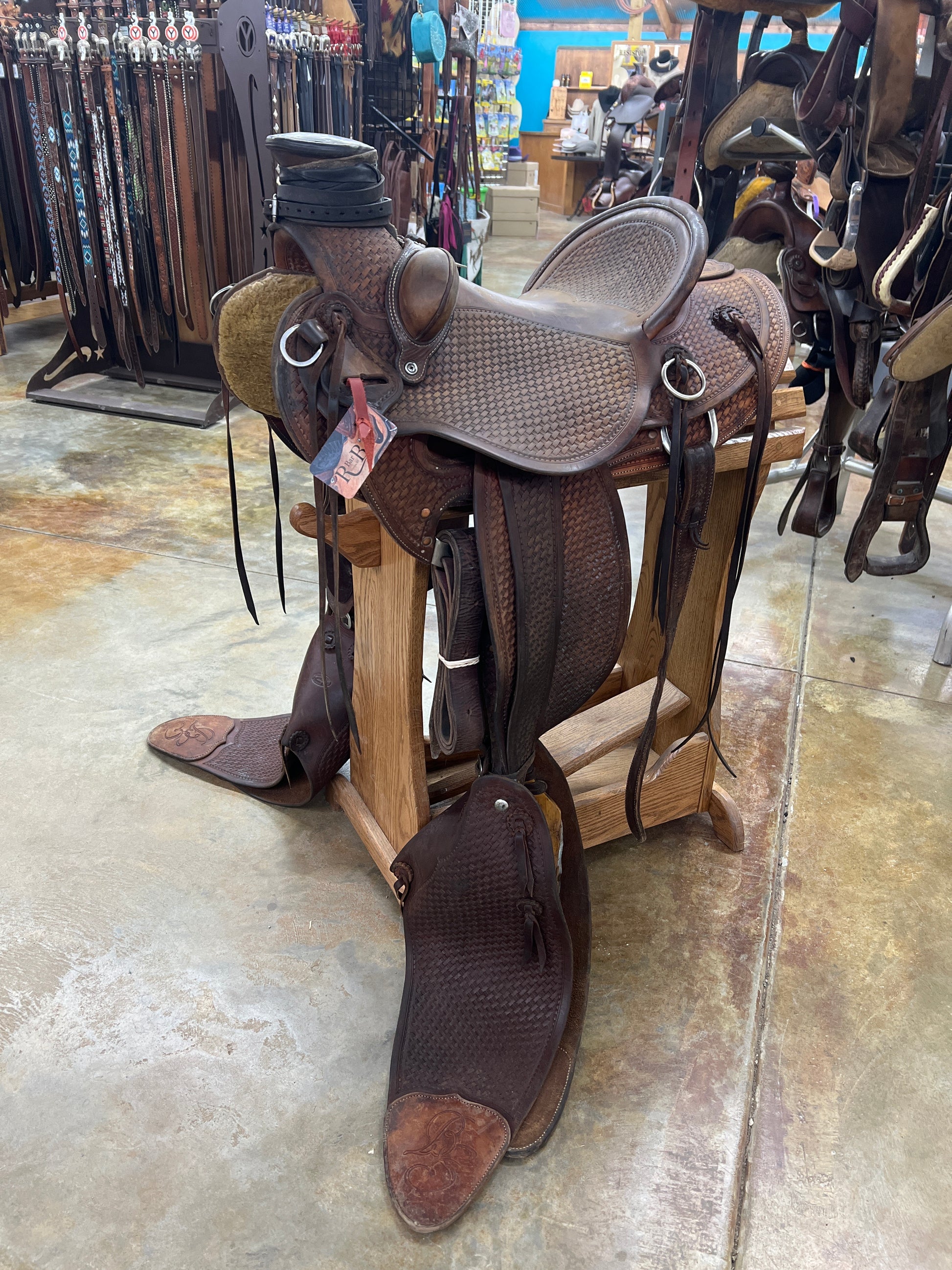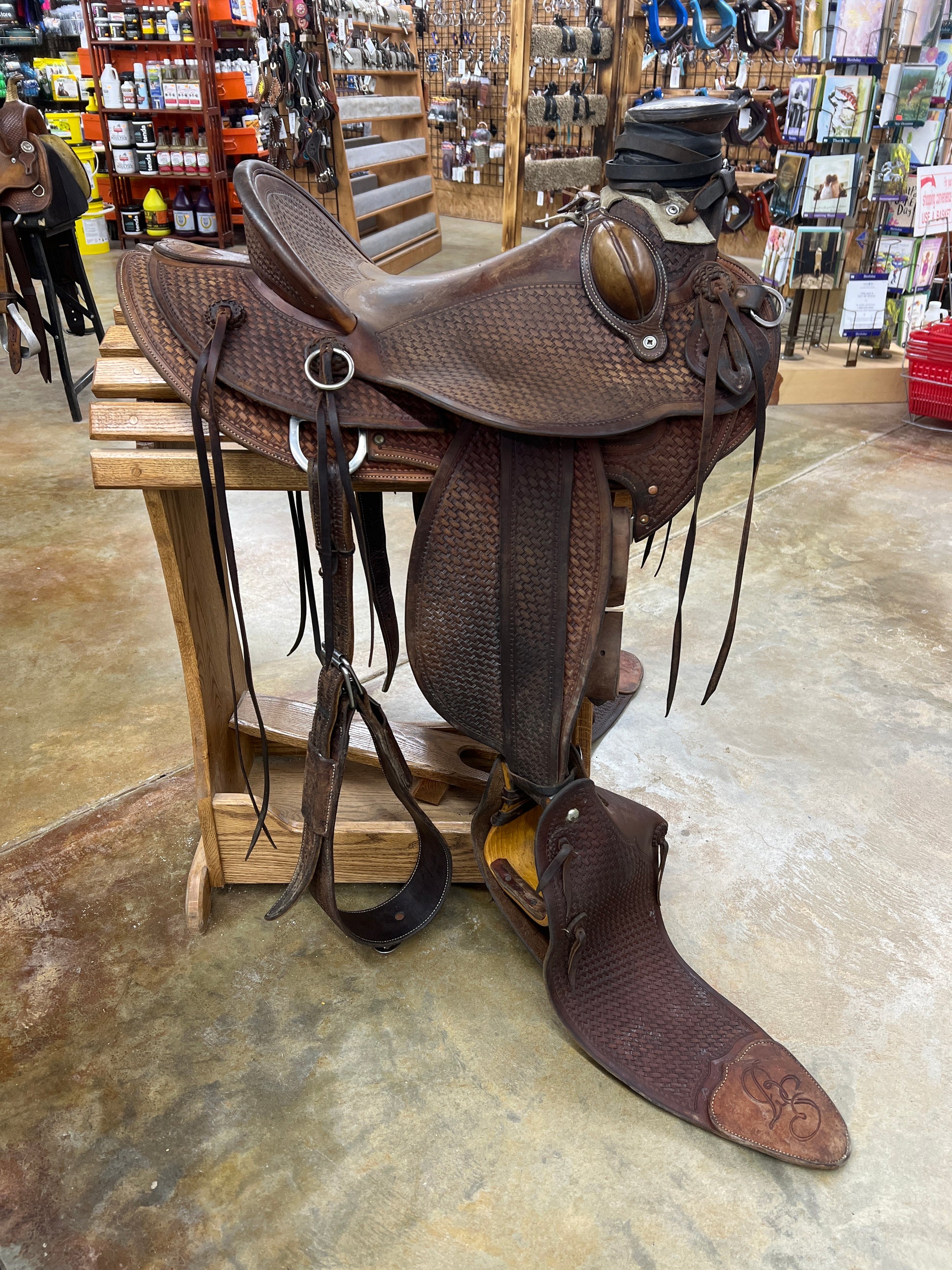 7/8 Tool Basket Stamp, Hard Seat, Leather Pencil Roll, Smoothout Leather, Saddle Strings, Bucking Rolls, Matching Tapaderos
