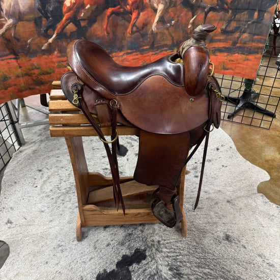 Smoothout Leather, Heavy Oil, Brown Grainout Padded Seat, Brass Hardware, SAddle Strings, Lightweight Poly Stirrups.