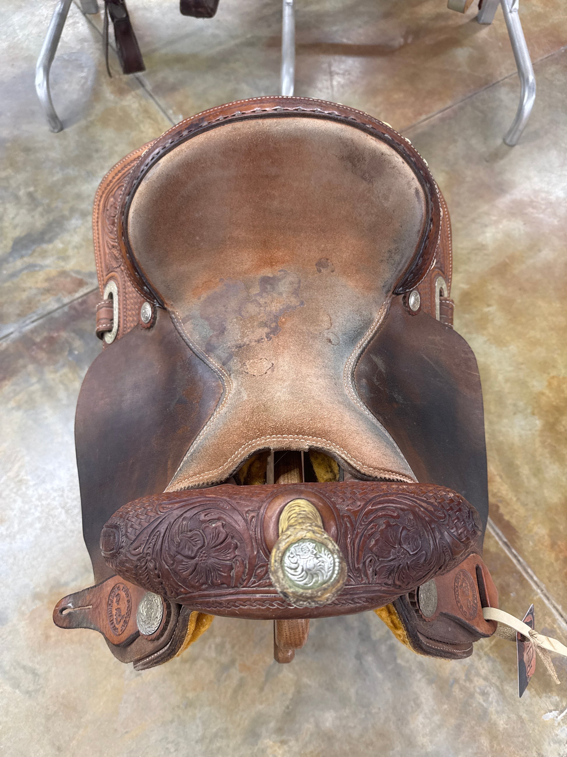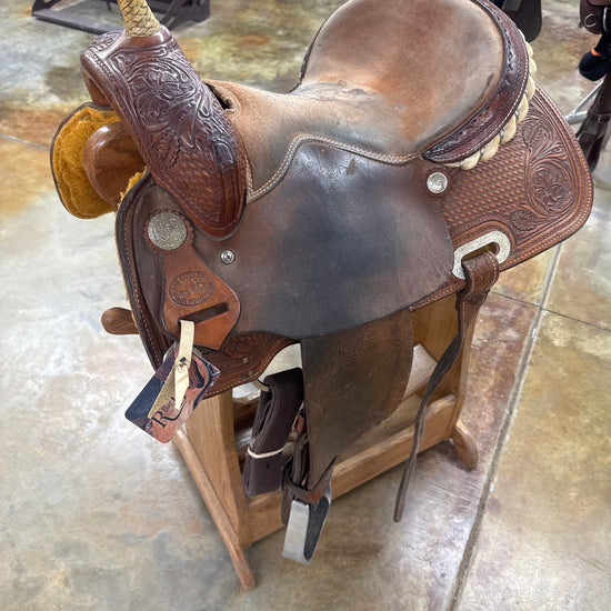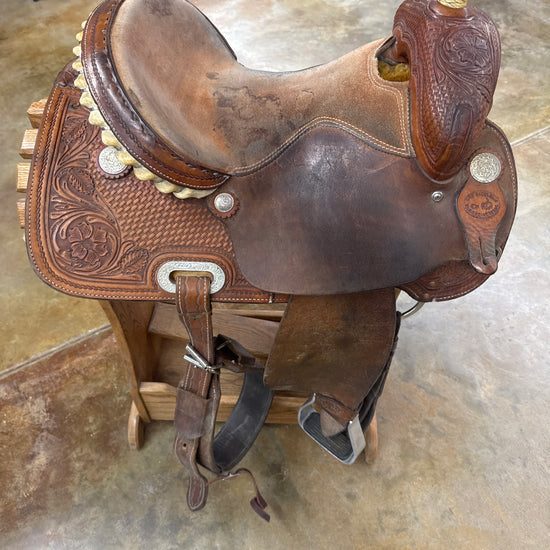 1/2 Tool Combo, Rust Suede Seat, Rawhide Silver Laced Cantle, Rawhide Braided Horn, Roughout Seat/Jockey/Fender. Aluminum Stirrups
