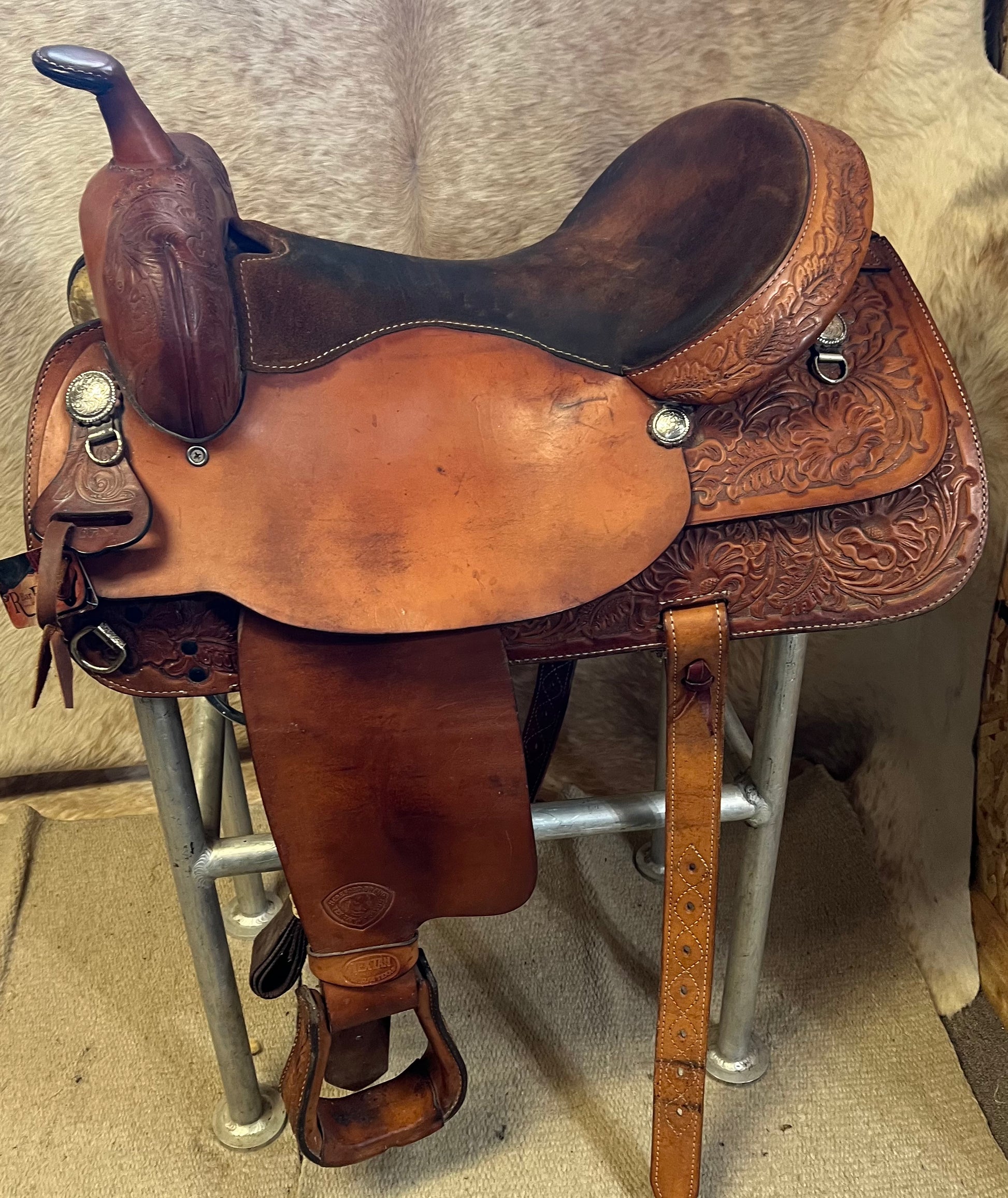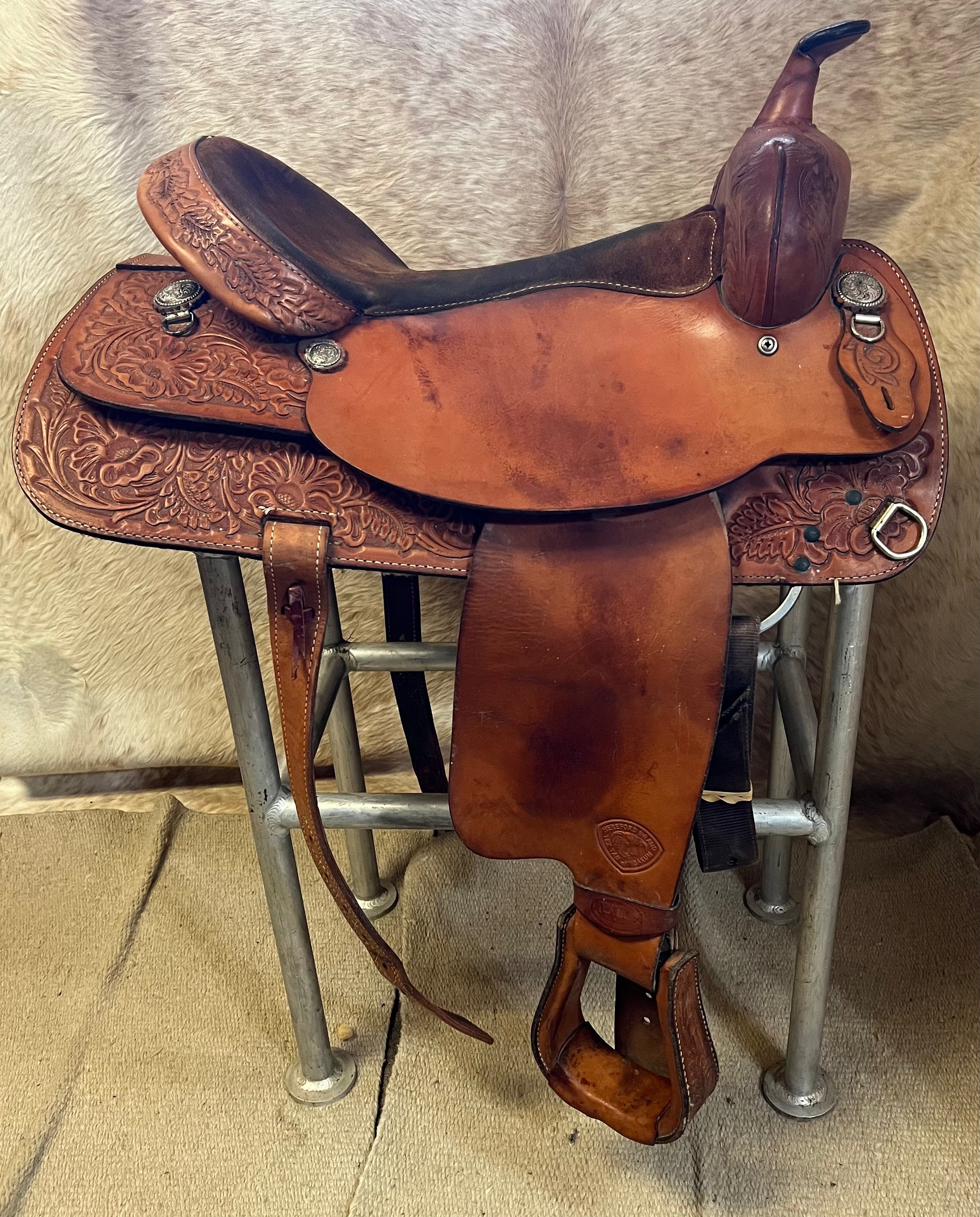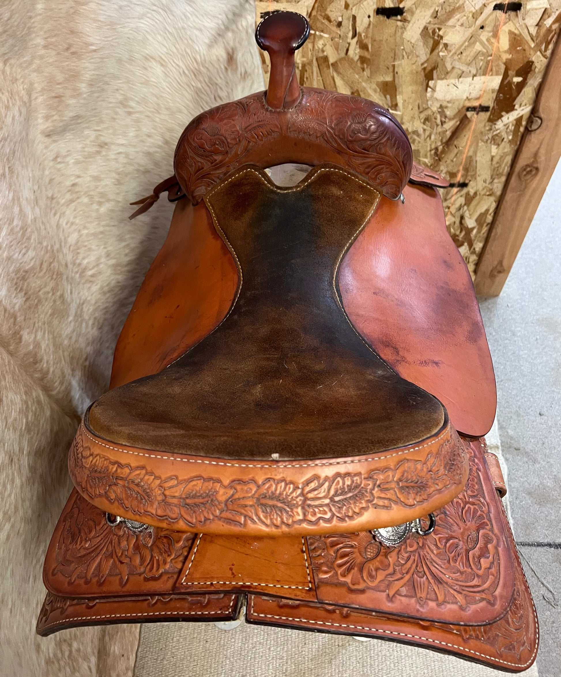Used Tex Tan Hereford Roper 1/2 Tooled Smooth Out Floral 17 inch seat