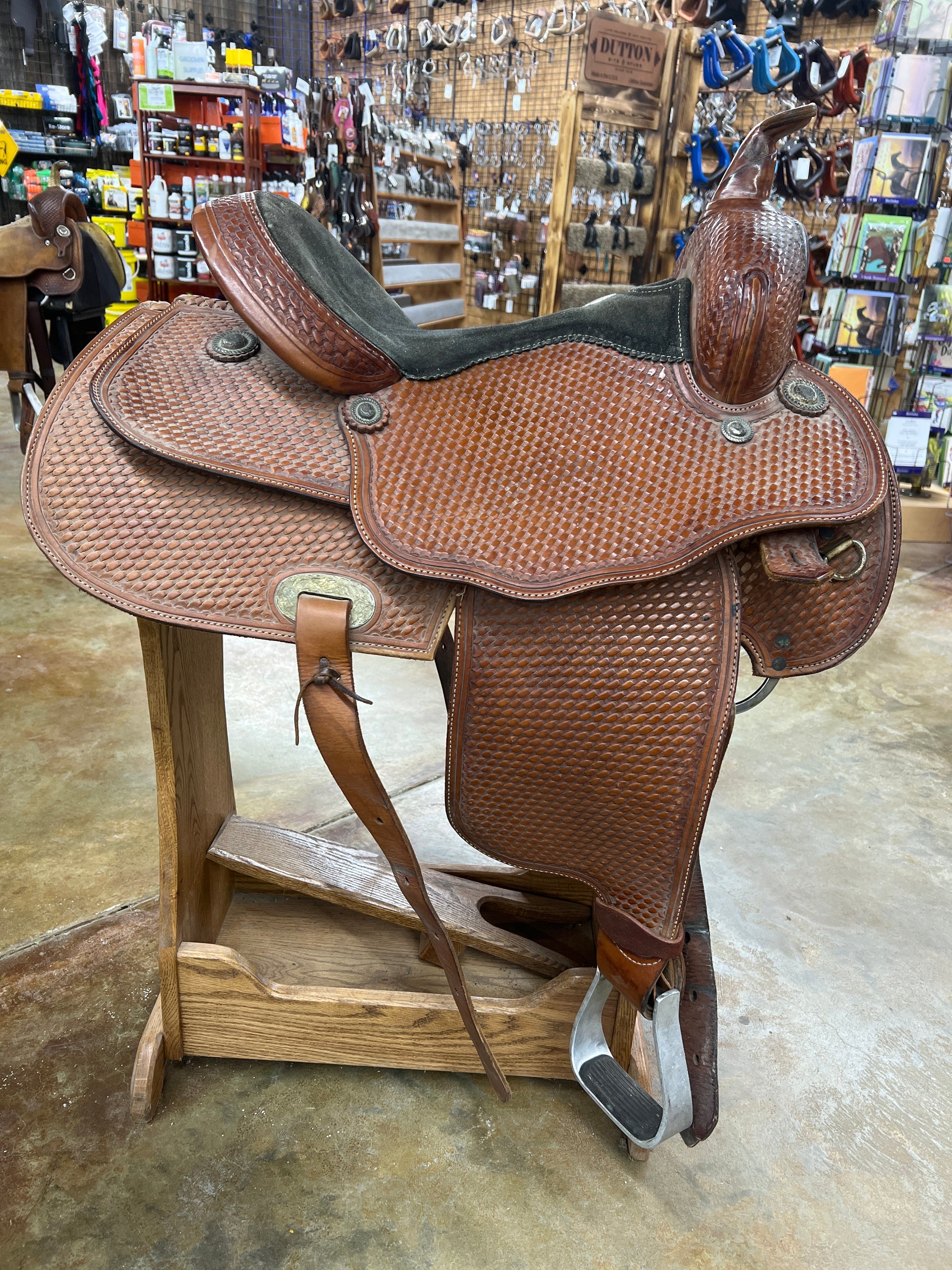 Full Tooled Basket Stamp, Black Suede Seat, Aluminum Stirrups
