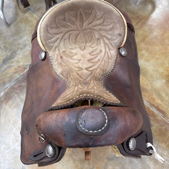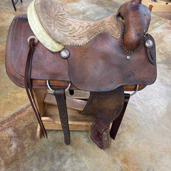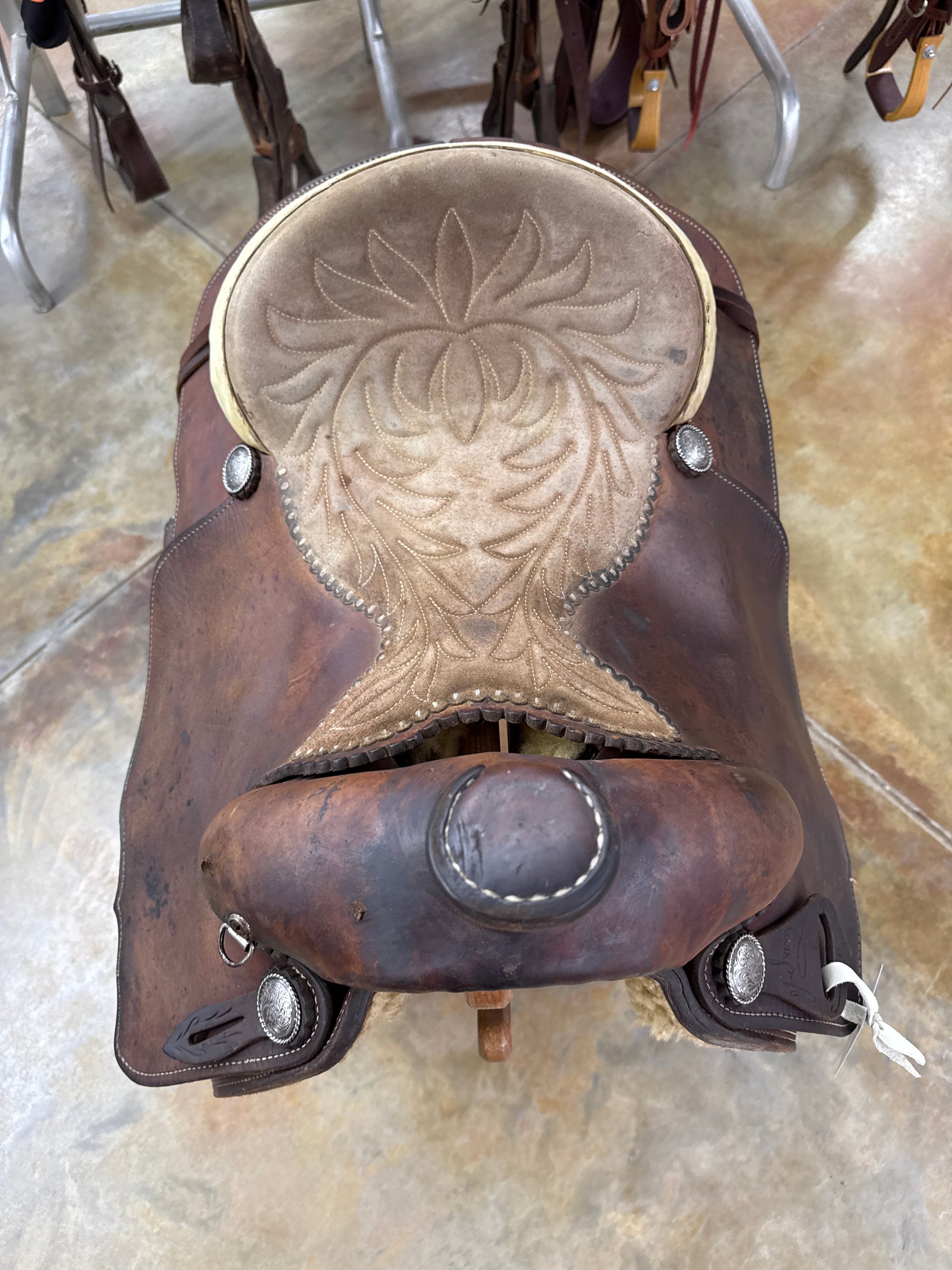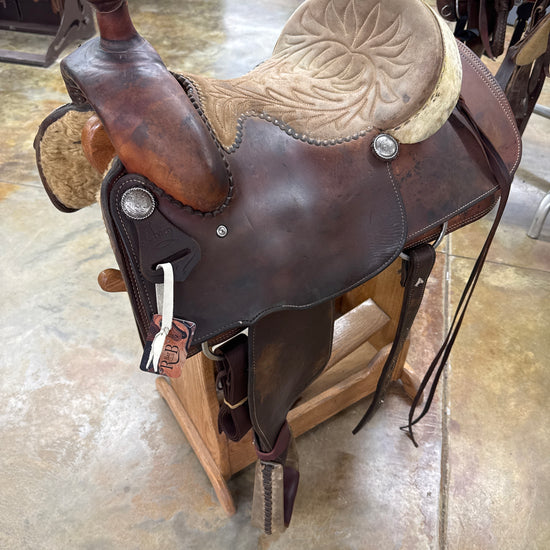 Smooth Leather, Double Stitch Line Skirts, Tan Suede Pop Stitched Seat, Rawhide Cantle Binding, Rawhide Wrapped Stirrups