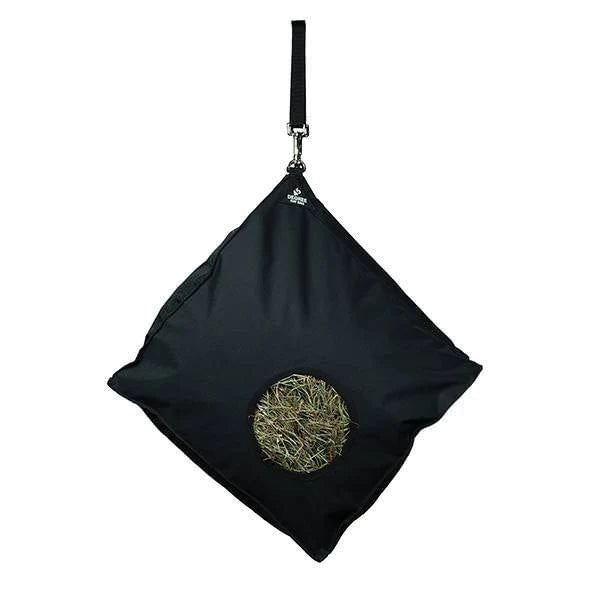 - Weaver 45 Degree Hay Bag features a convenient, side-loading design that can be refilled without taking it off of the stall wall. Simply open the flap, slide in the hay and secure the flap with industrial strength hook and loop closure and you're ready to go. This quick-loading bag is perfect for use in trailers. Made with an anti-twirl connecting loop on the back and an adjustable hanging strap. 21" wide x 22.5" high x 7.5" deep.