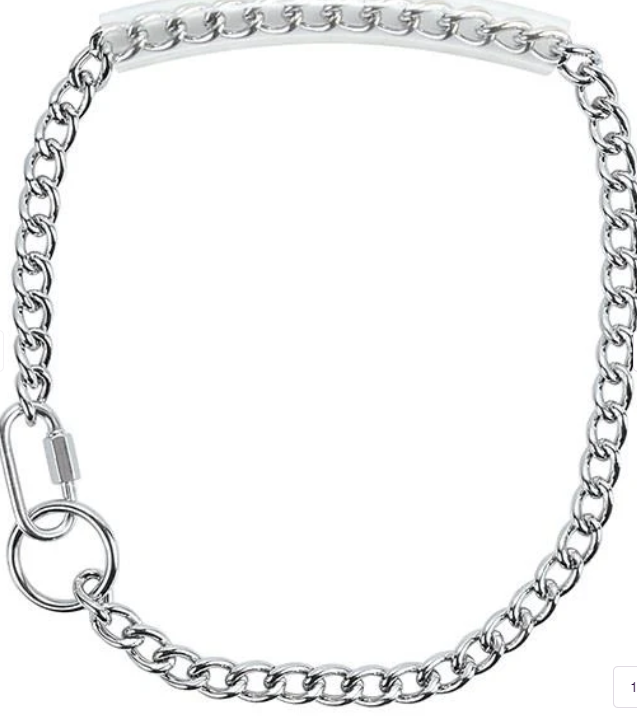 - This chain goat collar features a clear rubber handle that's comfortable in the hand