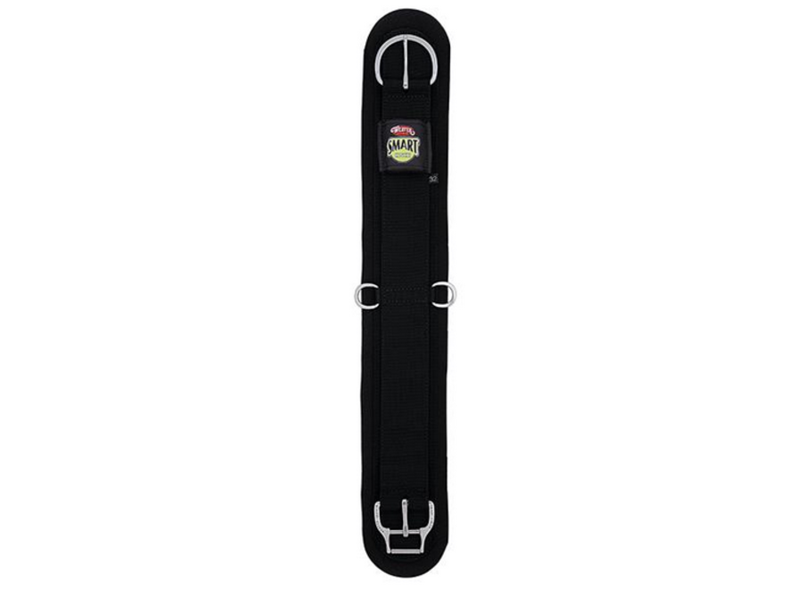 Now featuring the new and improved Roll Snug® Cinch Buckle, the Smart Cinch® is now smarter than ever! The innovative, patented buckles expertly-designed roller system now has less play so your latigo rolls more smoothly than ever. Designed with a contoured lip that keeps your latigo securely positioned, the buckle helps guide you for a straight pull every time. Its modern, sleek design also features a shaped buckle tongue with a hooked tip that helps keep your latigo locked down in place for added security. A popular choice for the trail, this cinch features a shock-absorbing neoprene backer that withstands the elements and moves with your horse for extra comfort. The poly webbing detaches from the neoprene for easy cleaning. Nylon off billet holder. Stainless steel hardware. U.S. Patent #6,688,086.