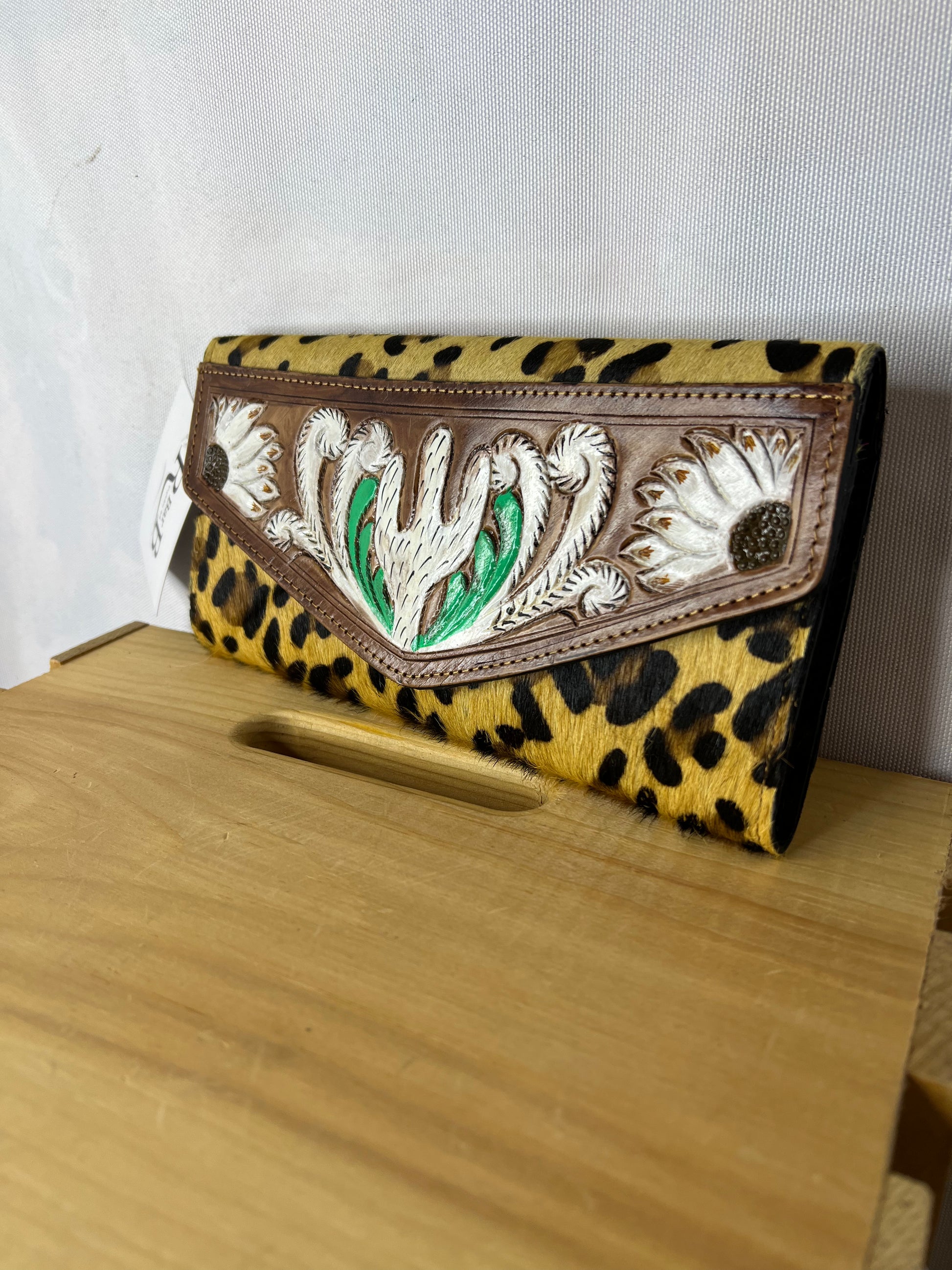 Western Linen Cheetah Print with Tooled Cactus Wallet
