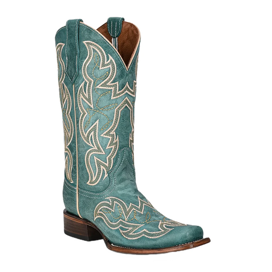 Circle G Women's Embroidery Square Toe Turquoise Boot