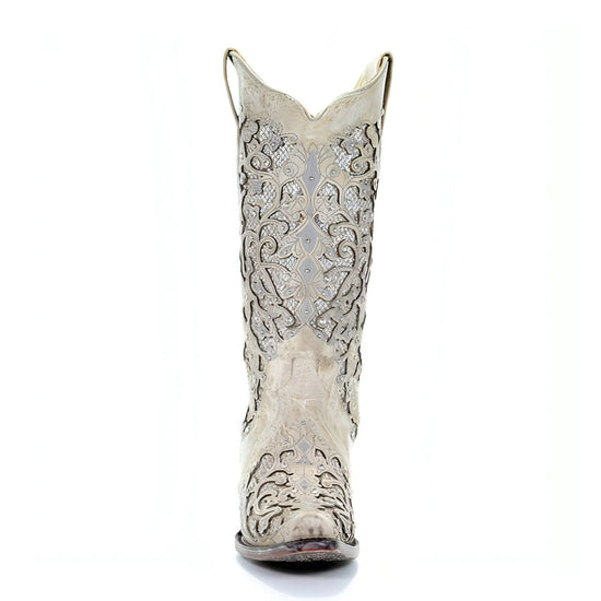 Corral Women's White w/Glitter Inlay Bridal Snip Toe Cowboy Boots