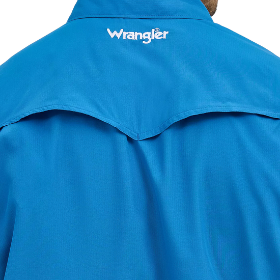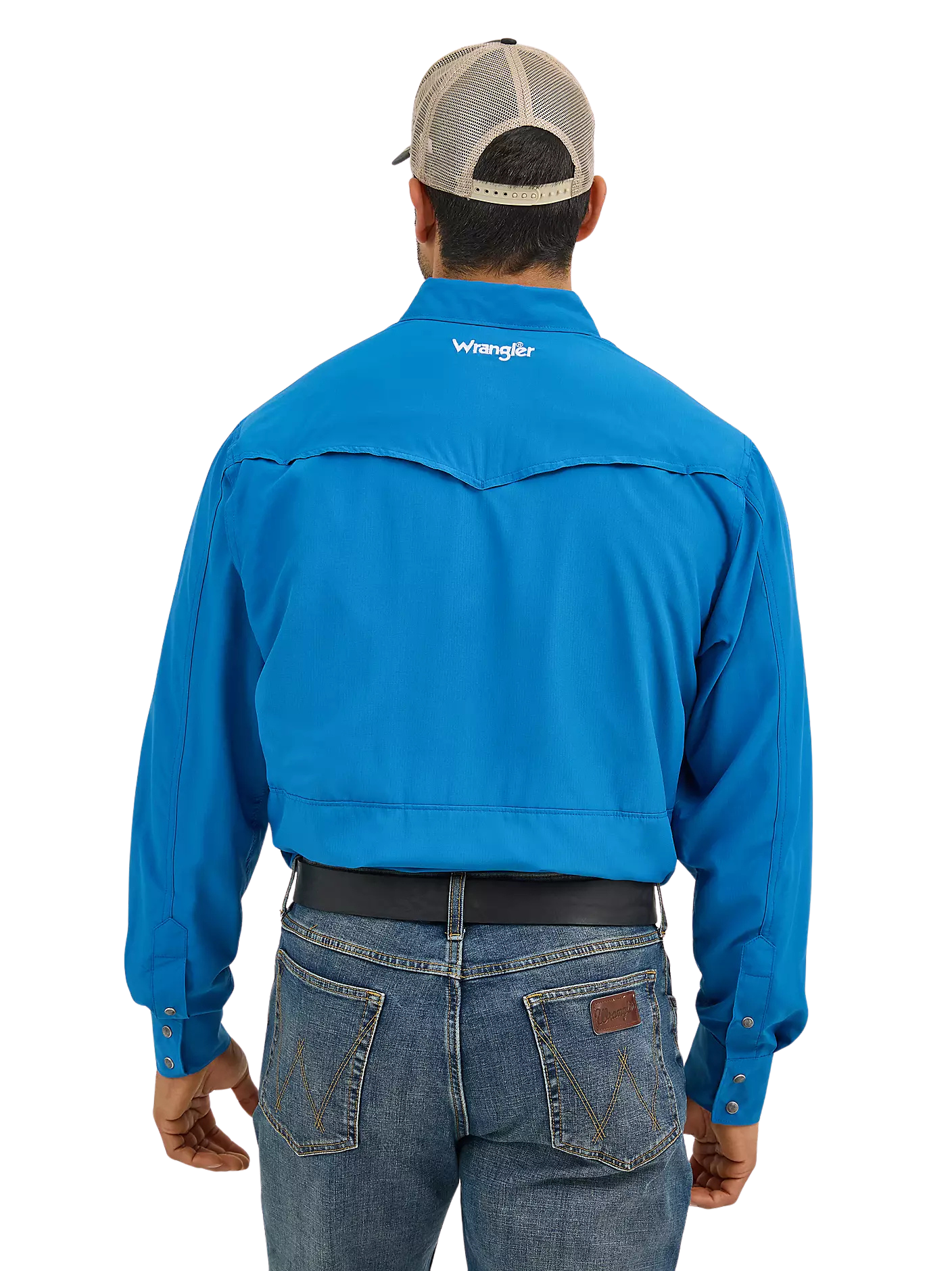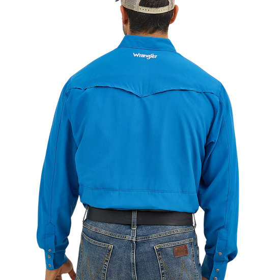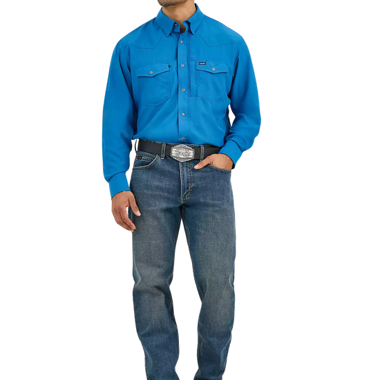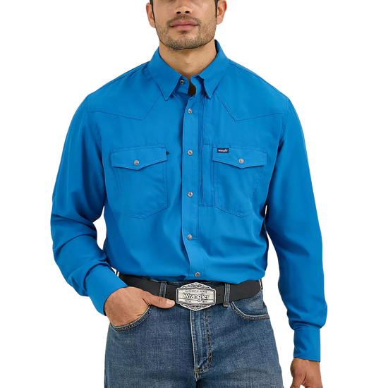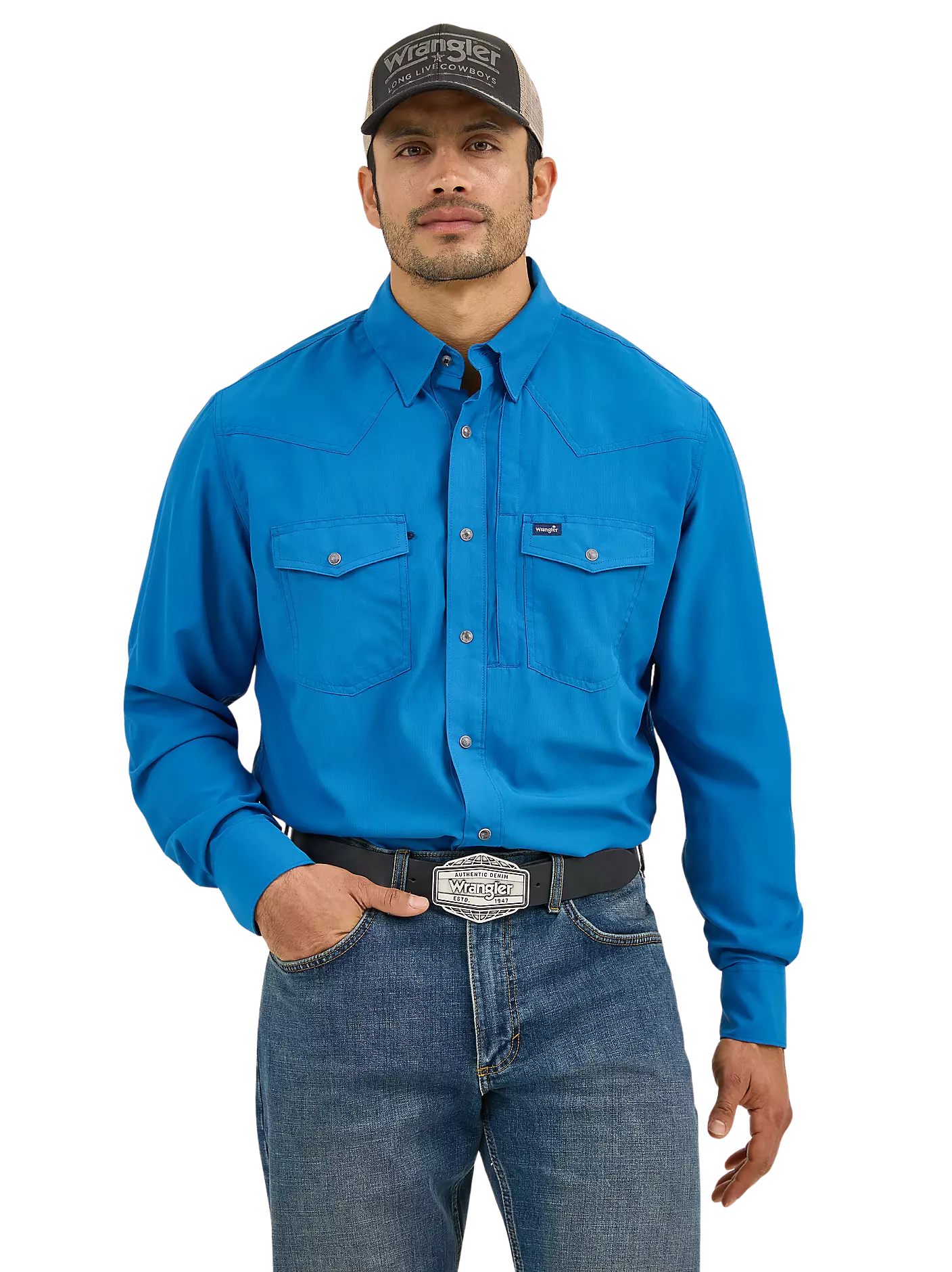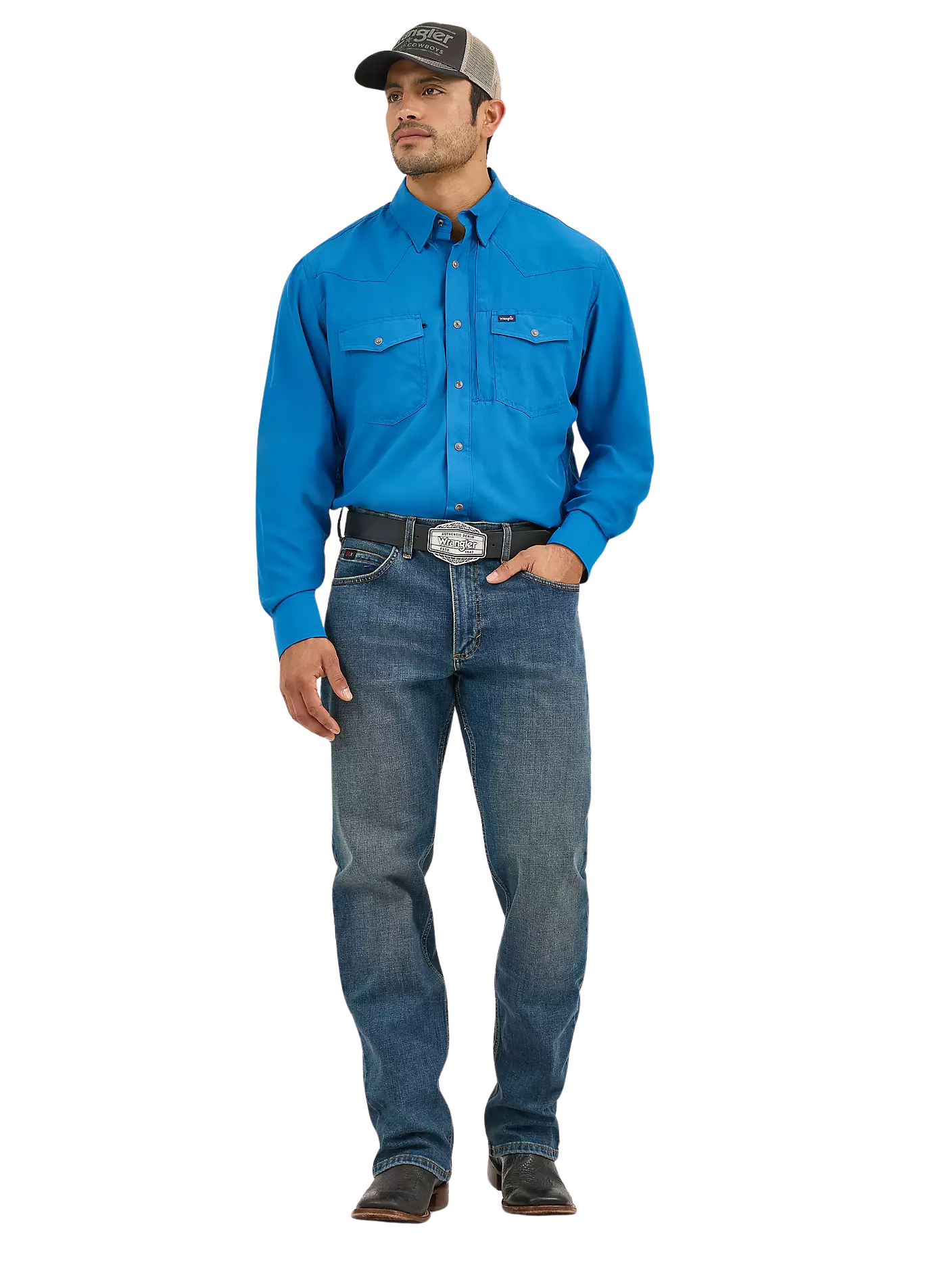 Wrangler Men's Performance Snap Long Sleeve Solid High Tide Blue Shirt