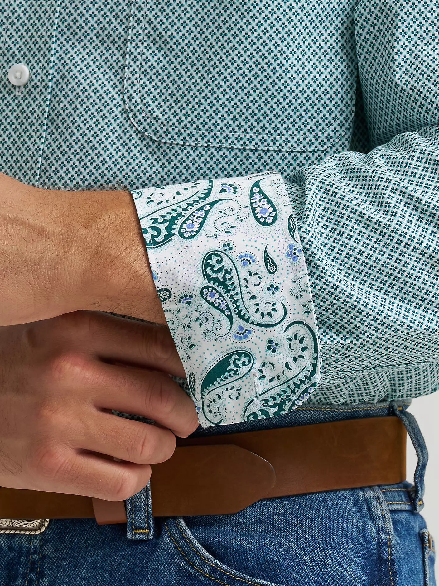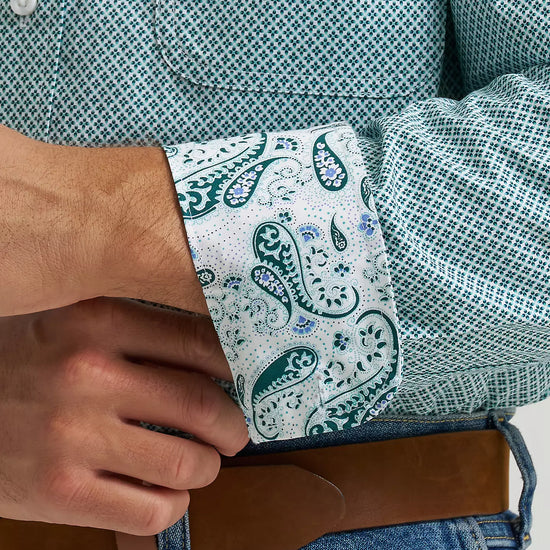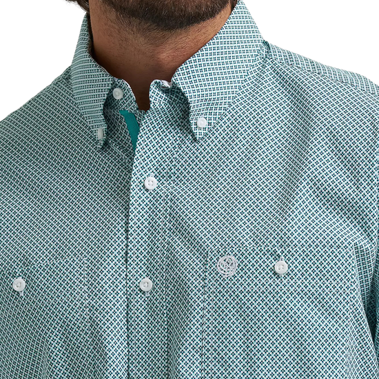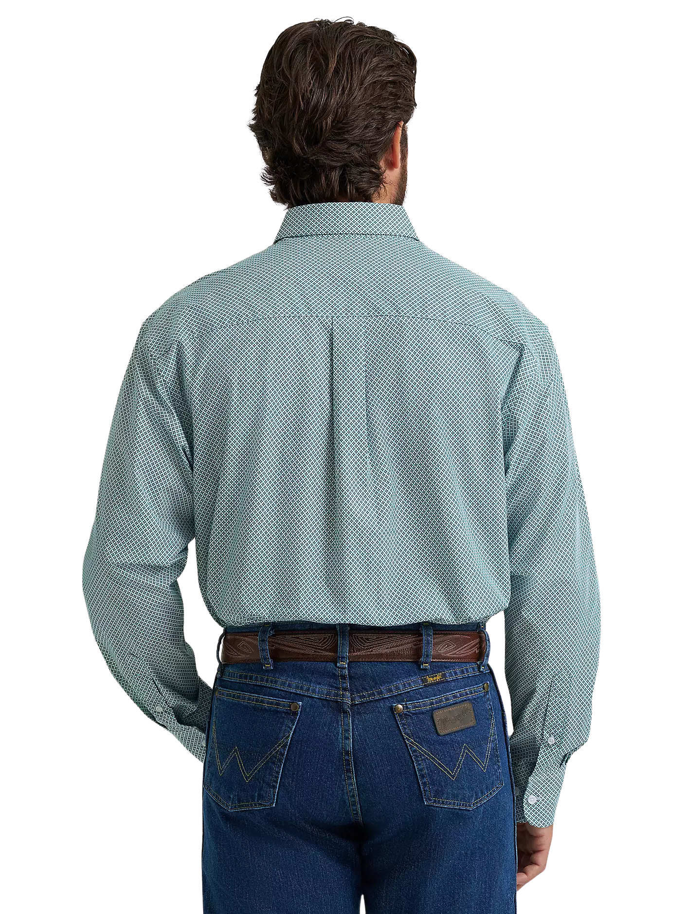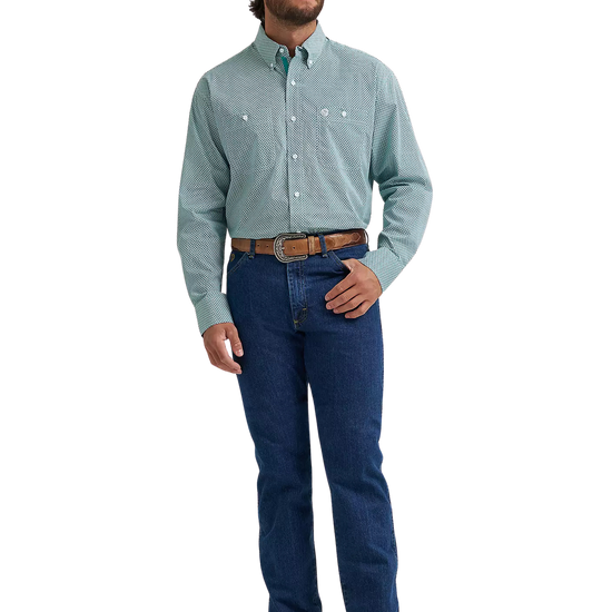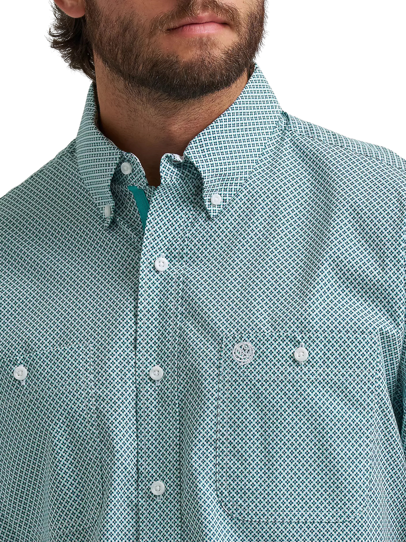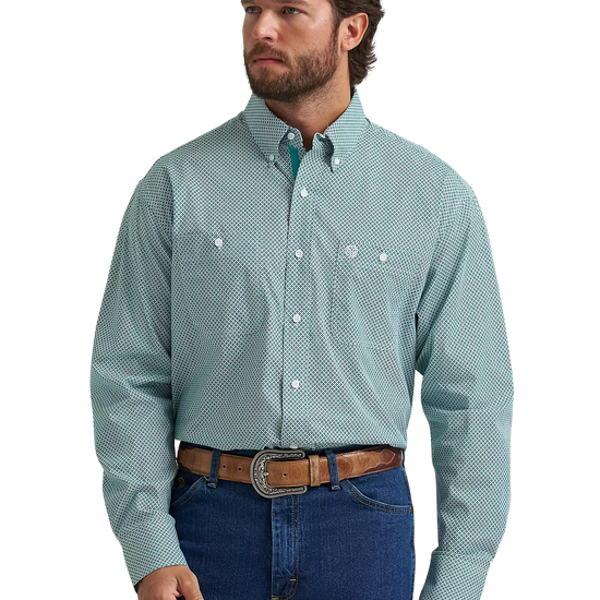 Wrangler Men's George Strait Aqua Cross Long Sleeve Button Down Two Pocket Shirt