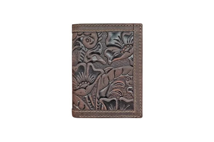 Crafted from rich leather with a Texas rose embossed design and detailed stitched trim, this trifold wallet combines rugged style with practical functionality. Its compact layout offers ample space for cards and cash, making it the perfect everyday accessory for those who appreciate classic Western flair. Durable and stylish, this wallet ensures your essentials are organized while showcasing a distinctive look.