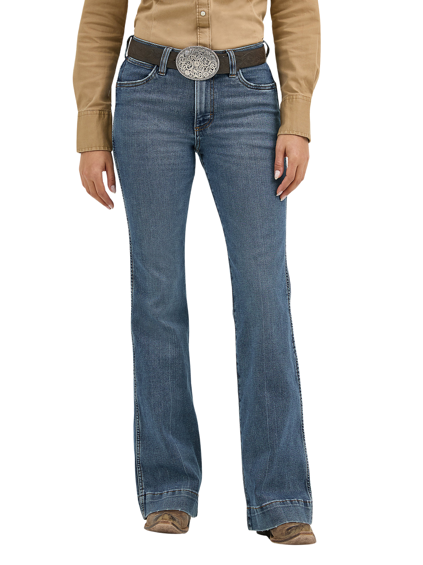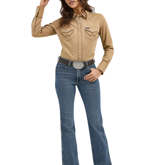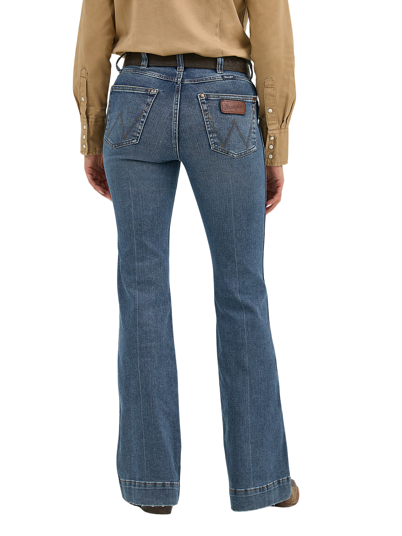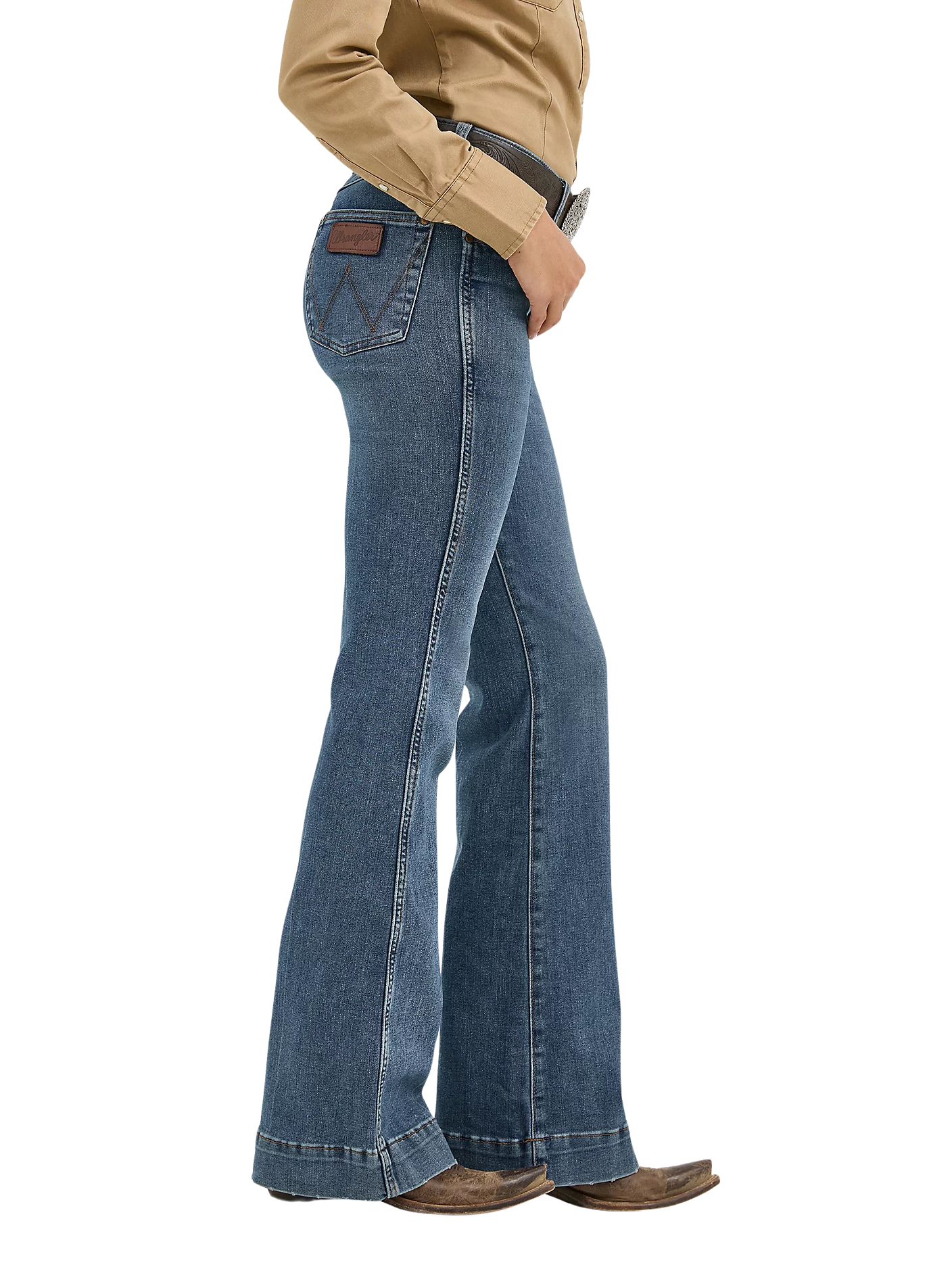 Flattering from every angle, the Women’s Wrangler Retro® Bailey High Rise Trouser Jean is a best-kept secret for ladies who love volume. These denim trousers are crafted from a cotton blend with just a hint of stretch for all-day comfort. They come with a high-rise silhouette, a close fit through the thigh, and a 20.5” flared leg full of vintage vibes. Plus, the five-pocket styling, “W” pocket stitching, and logo patch bring an unmatched level of Western authenticity.