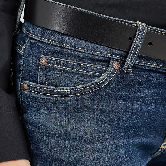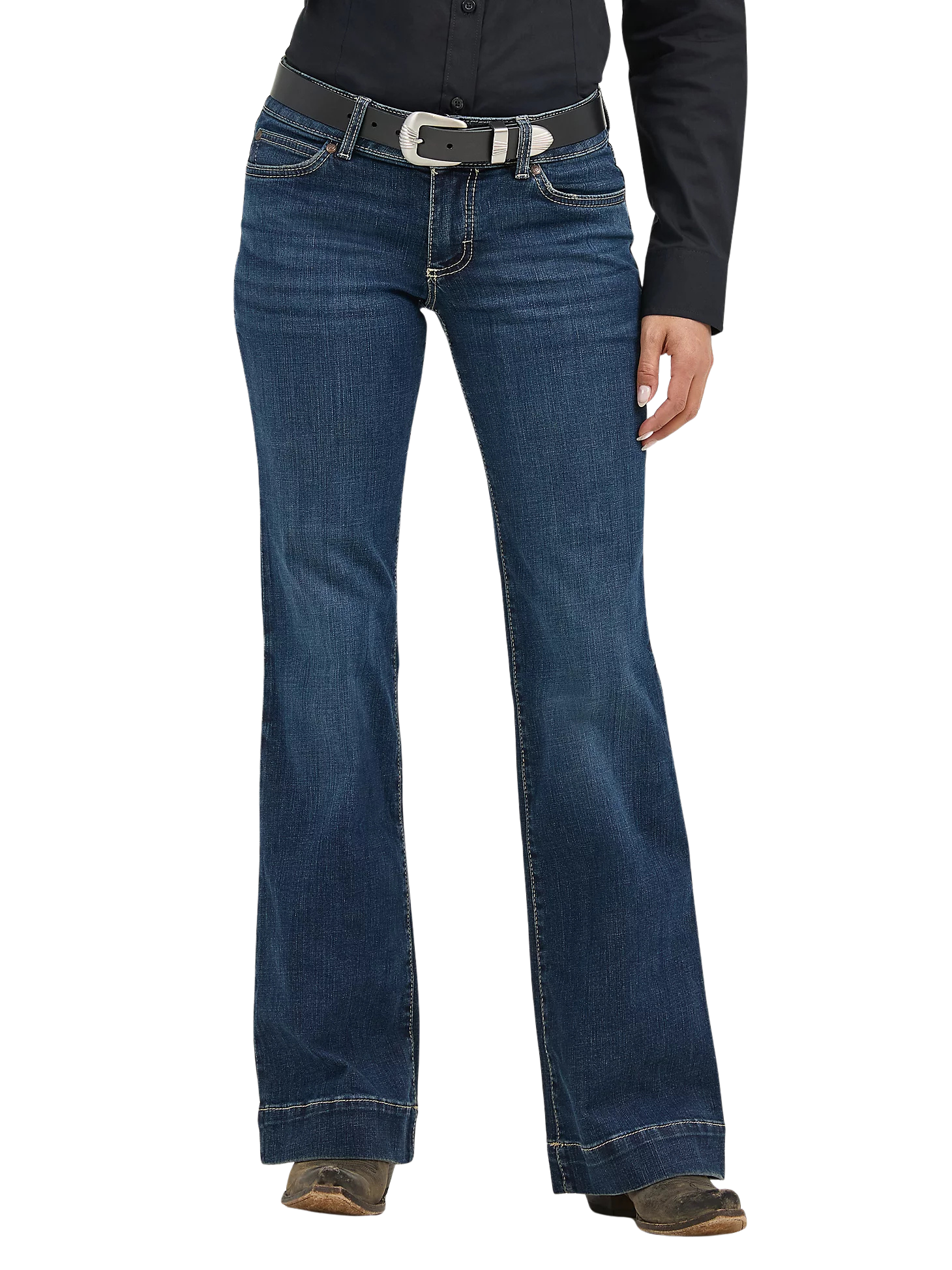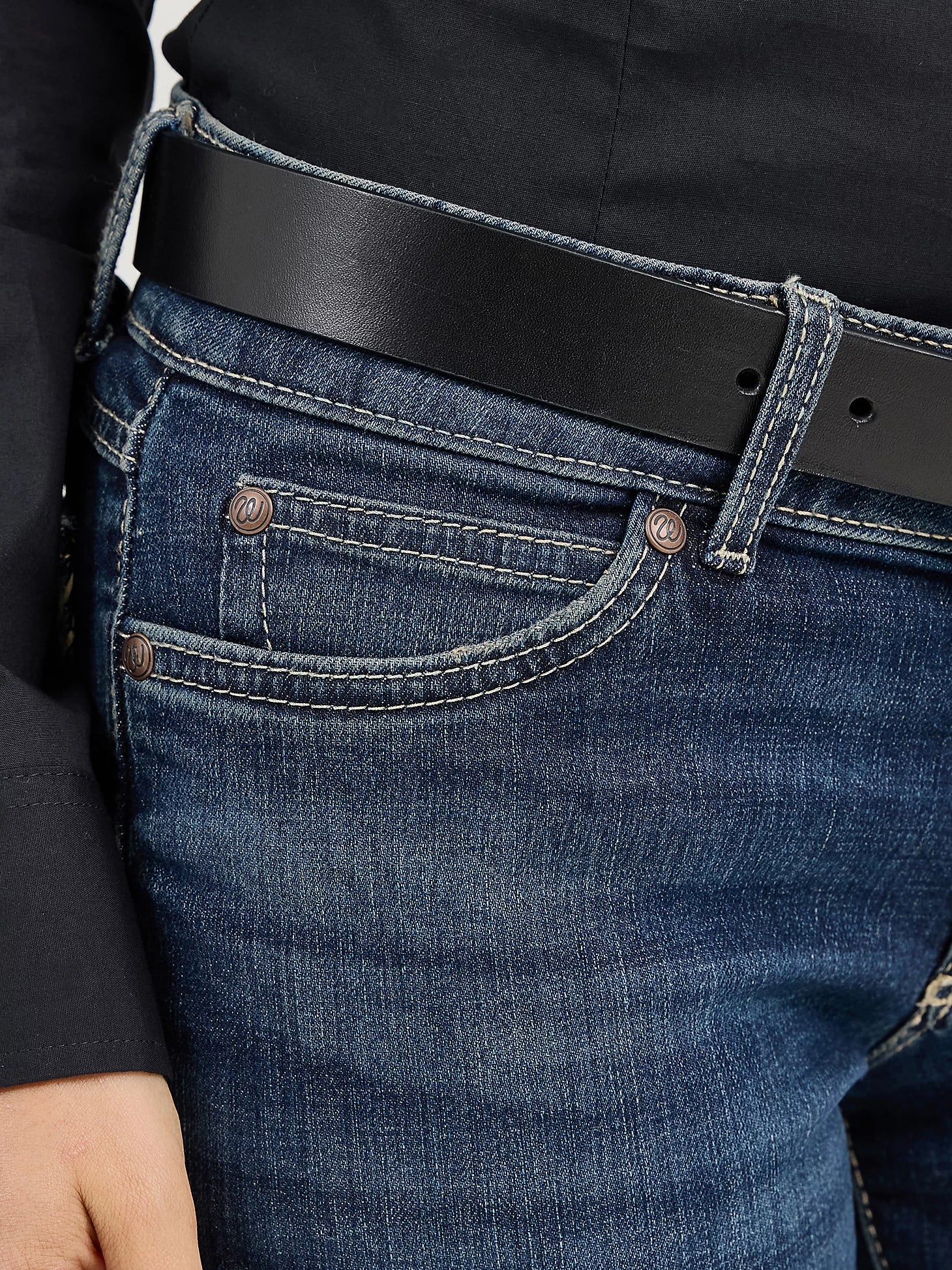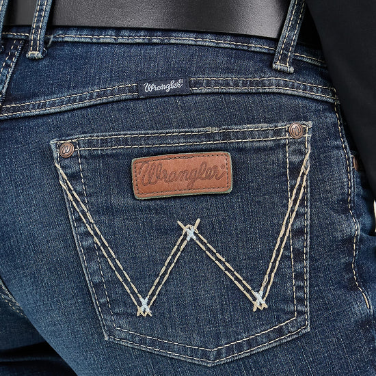 Like all Wrangler Retro® jeans, our Mae wide-leg trouser jean is marked by its Western authenticity, making it a go-to style for cowgirls everywhere. With its contour waist and mid-rise fit, these women's trouser jeans are made to fit comfortably while they flatter all your curves. With more room at the knee and a gradual opening down the leg, the Mae wide-leg trouser gives you the room you need to stay active and in style.